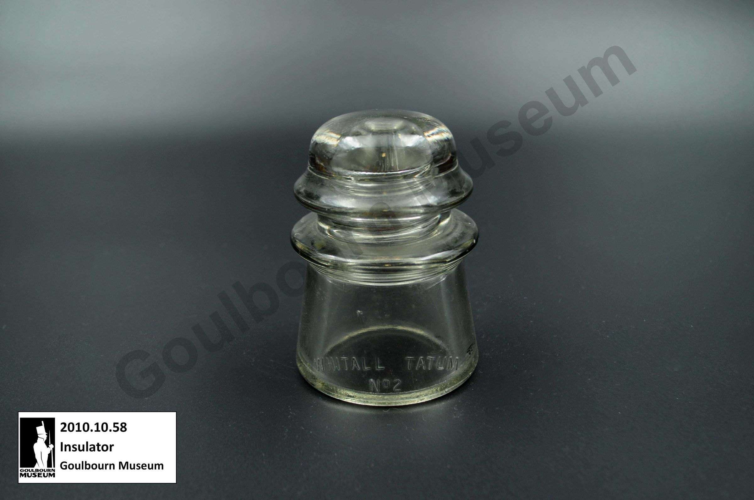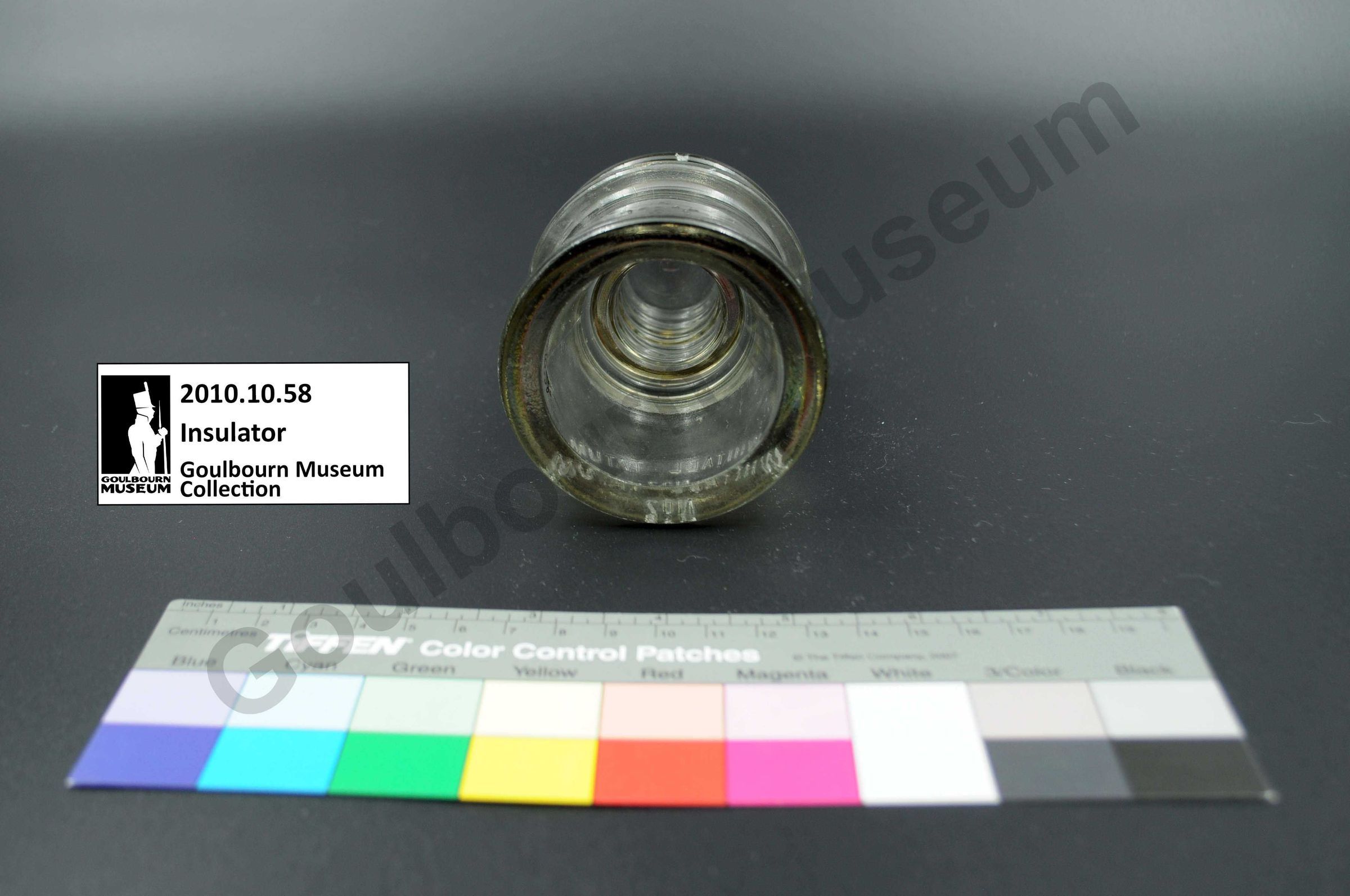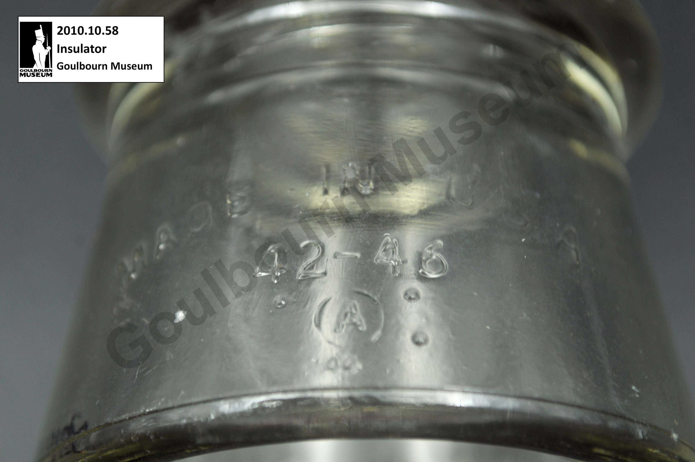 This glass insulator was donated from outside the Goulburn region but is an example of a type that could be used within the region.Collection
