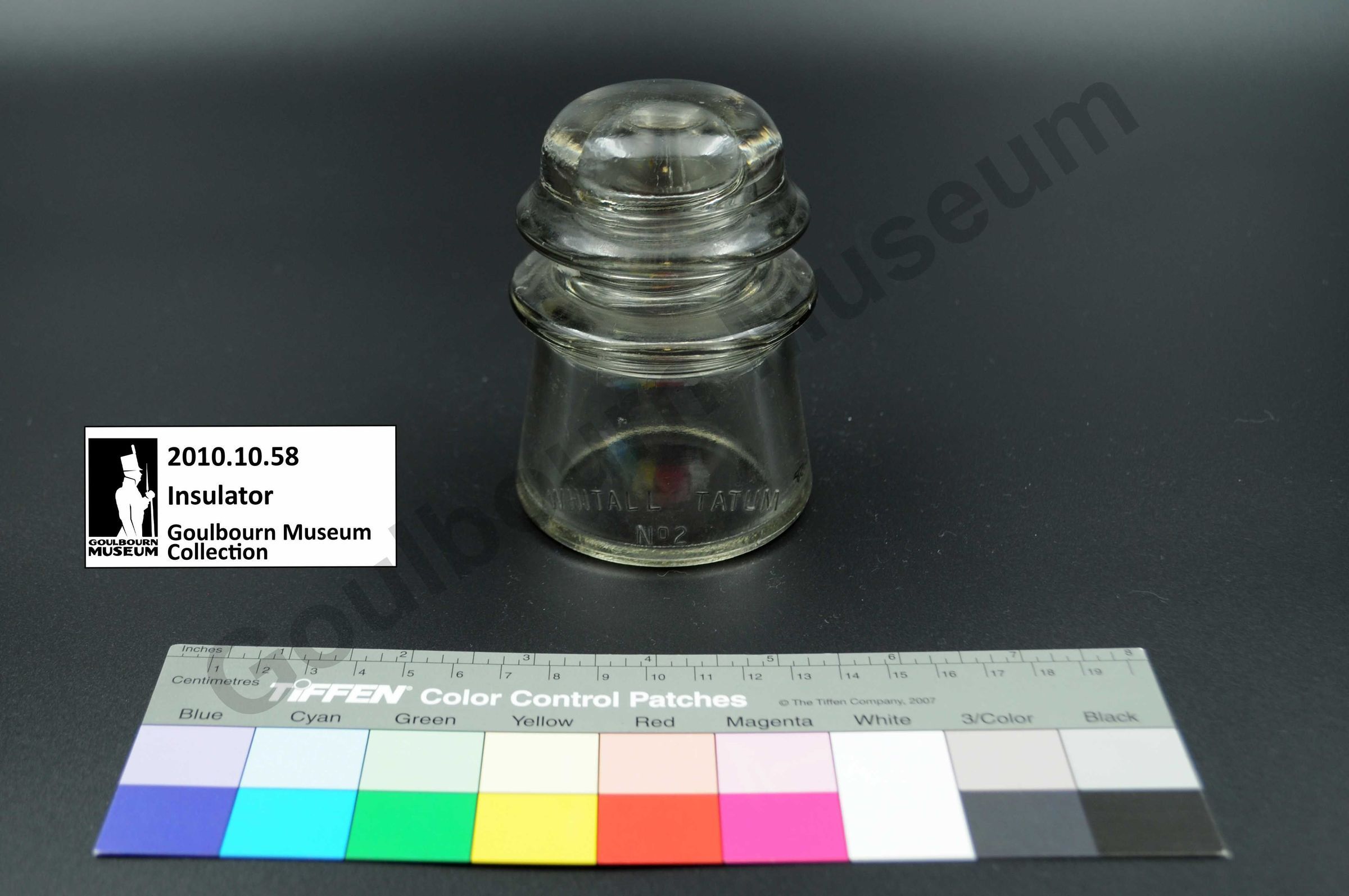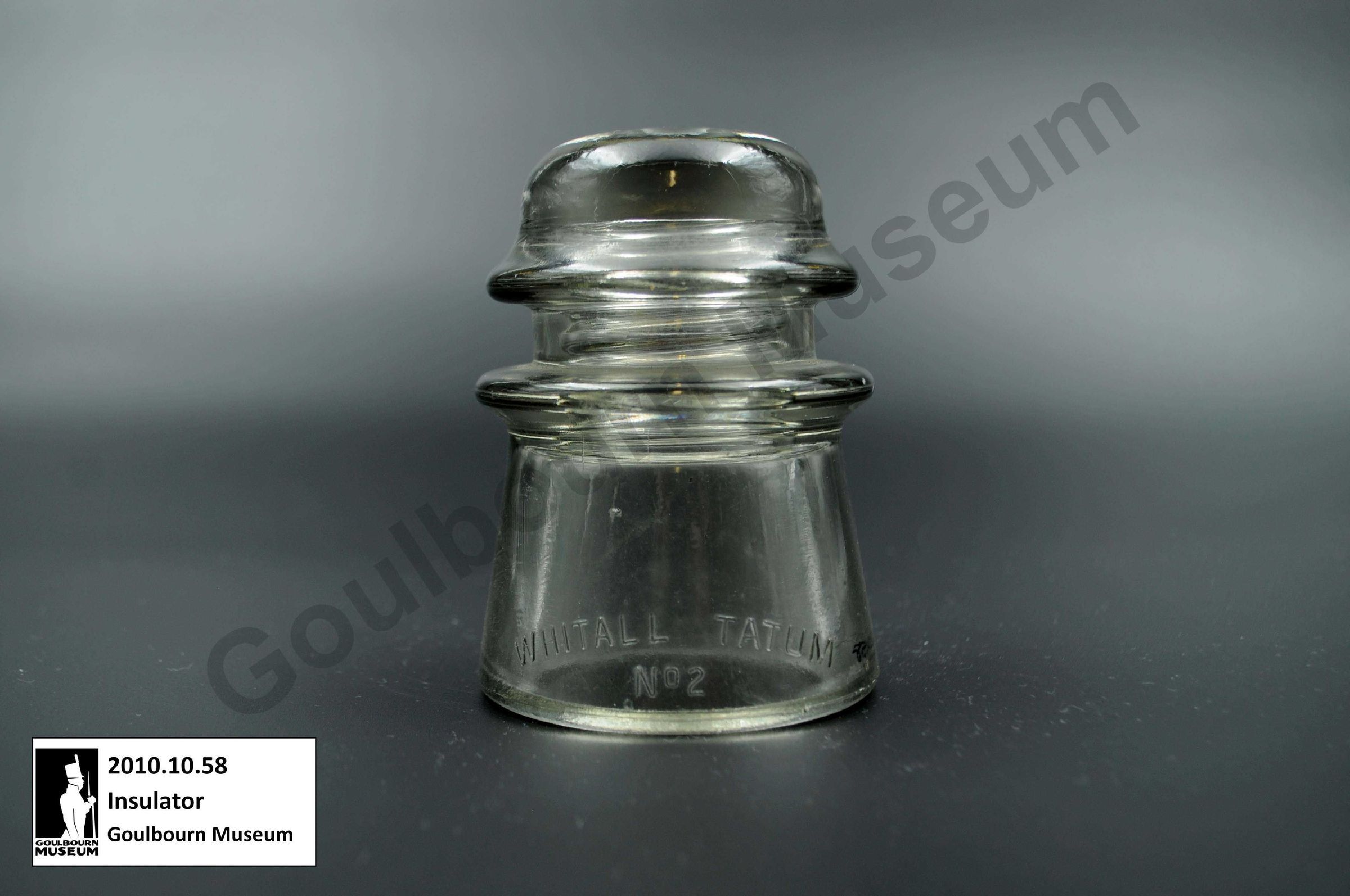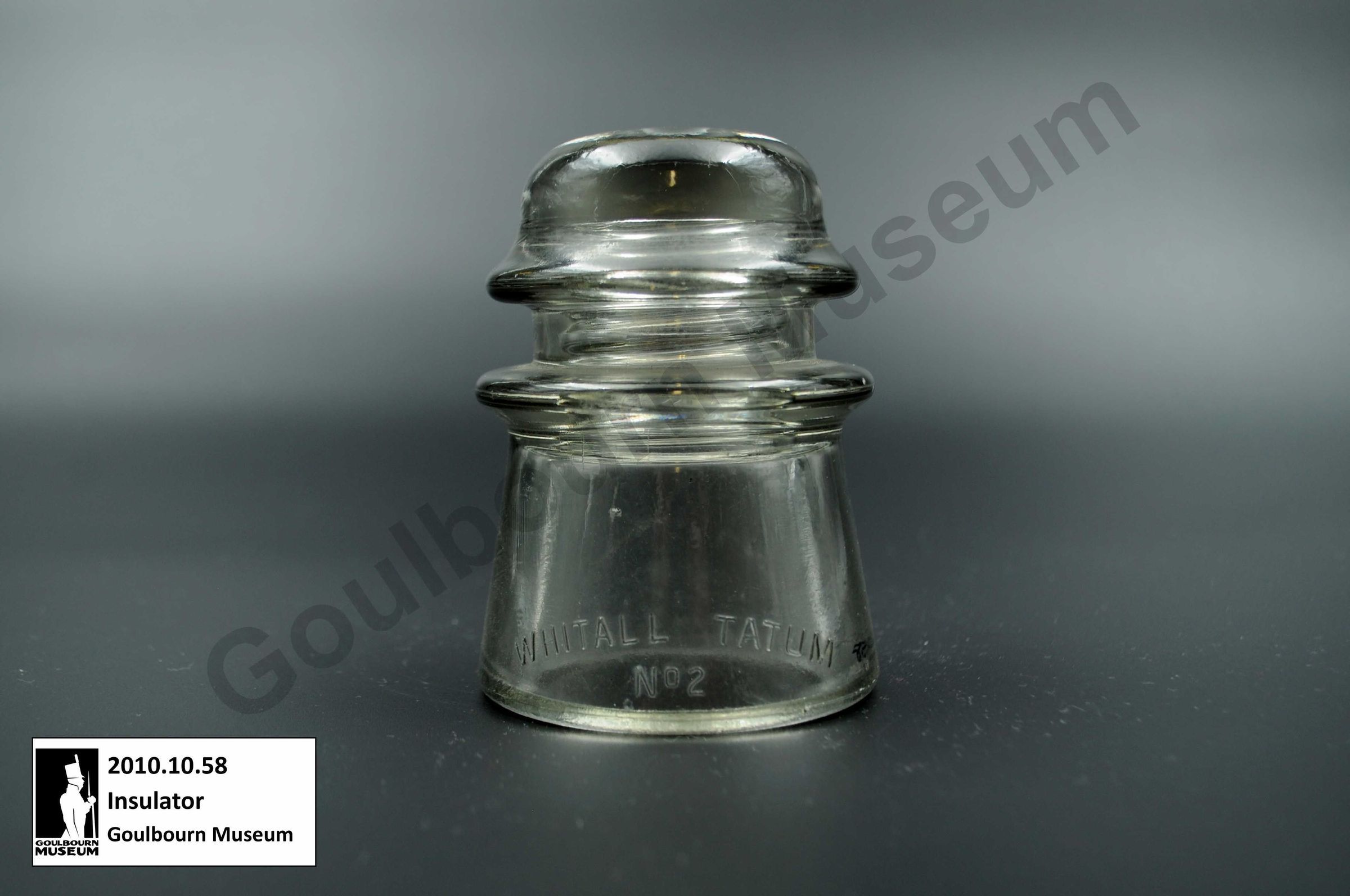This glass insulator was donated from outside the Goulburn region but is an example of a type that could be used within the region.Collection