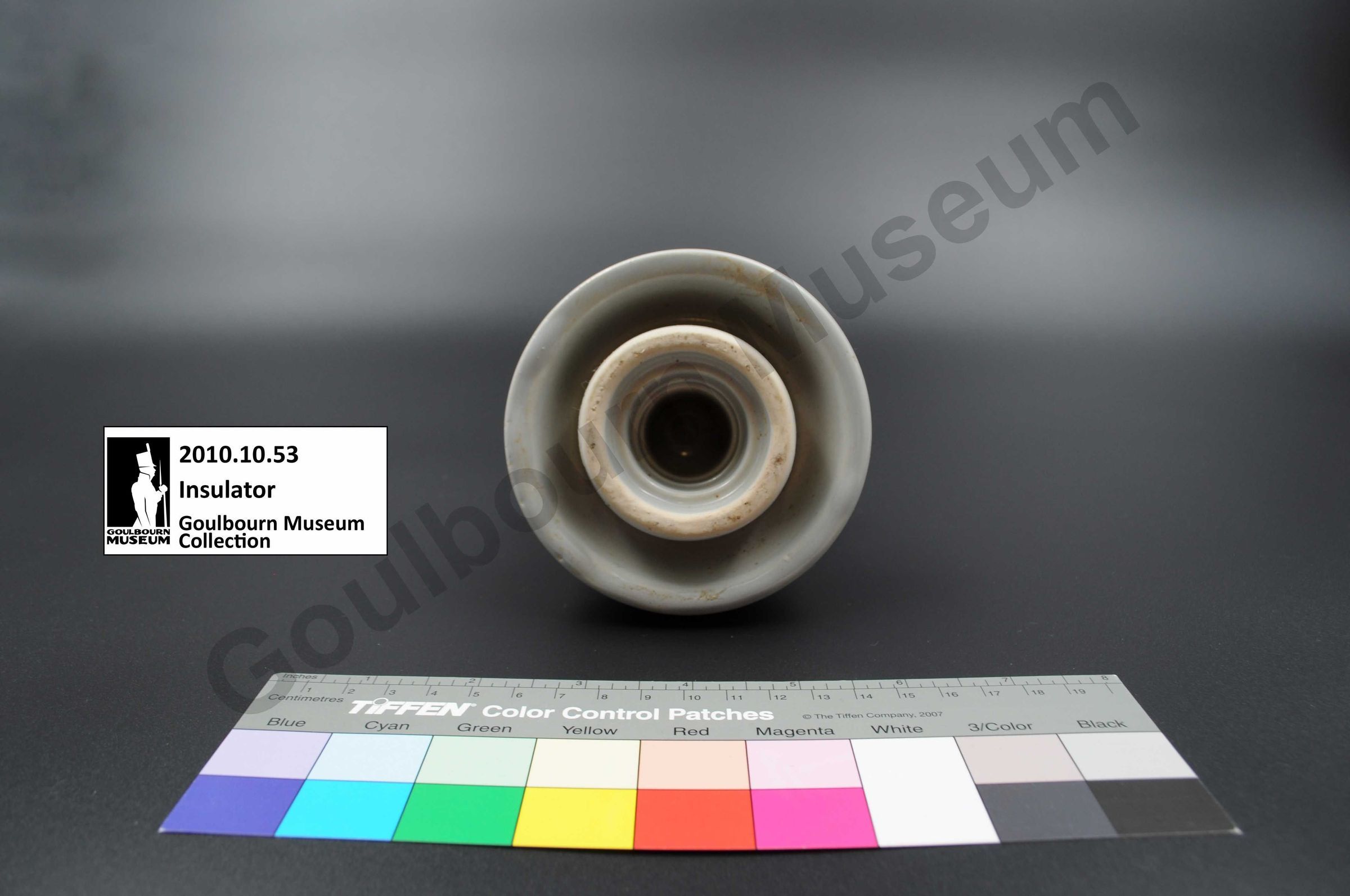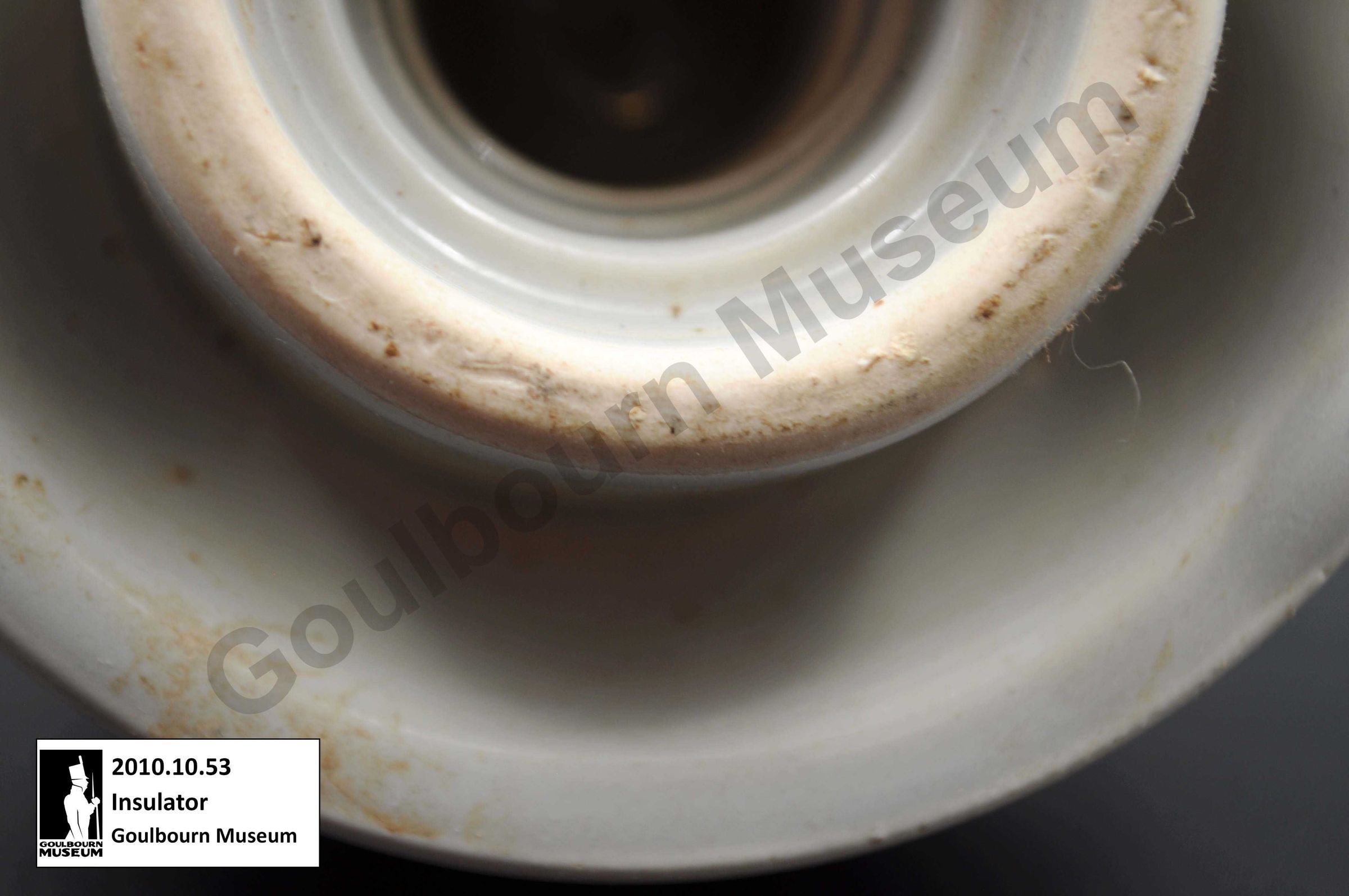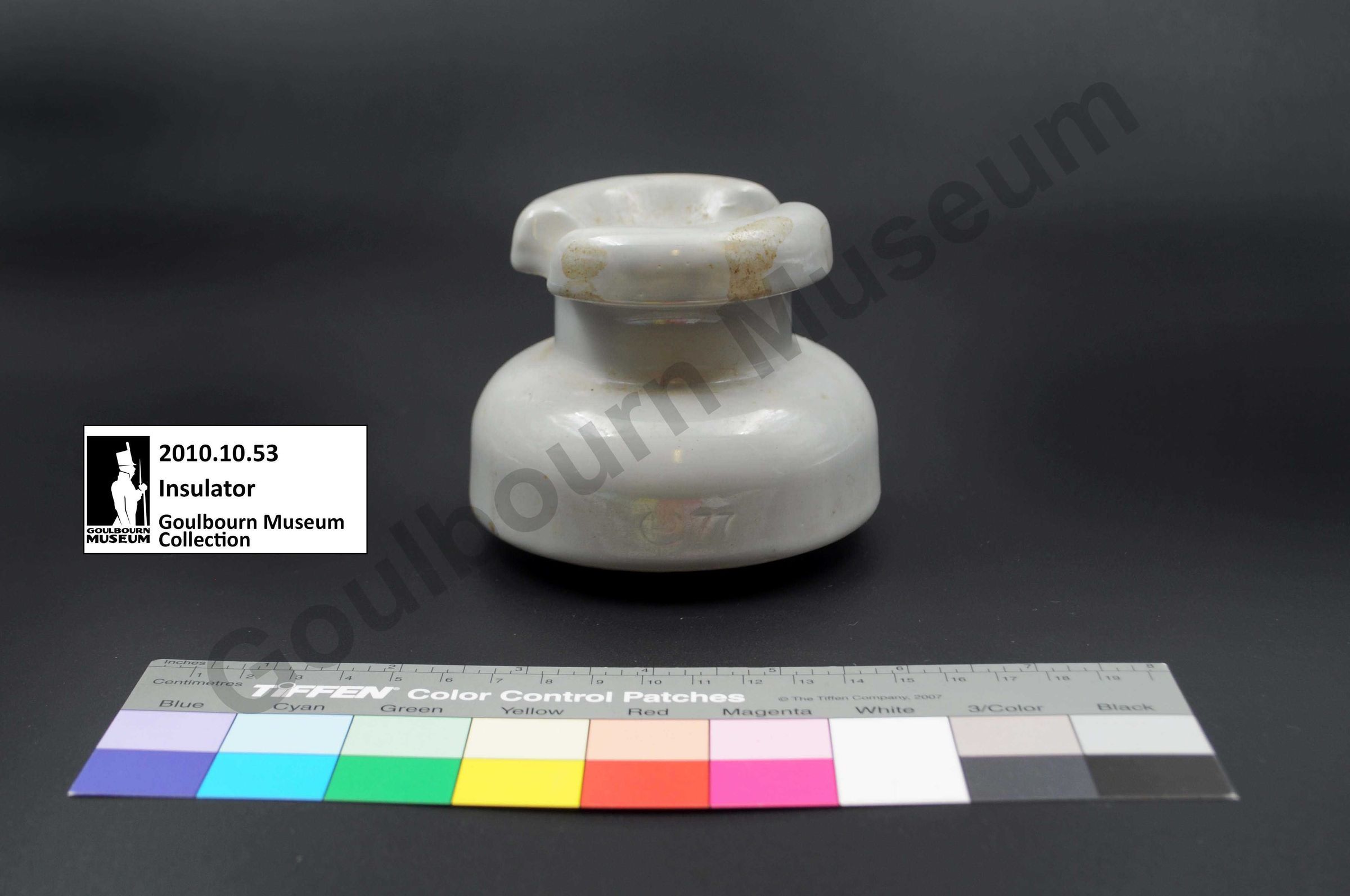 This is an example of a type of unique ceramic insulator that could have been used within the Goulbourn region.Collection