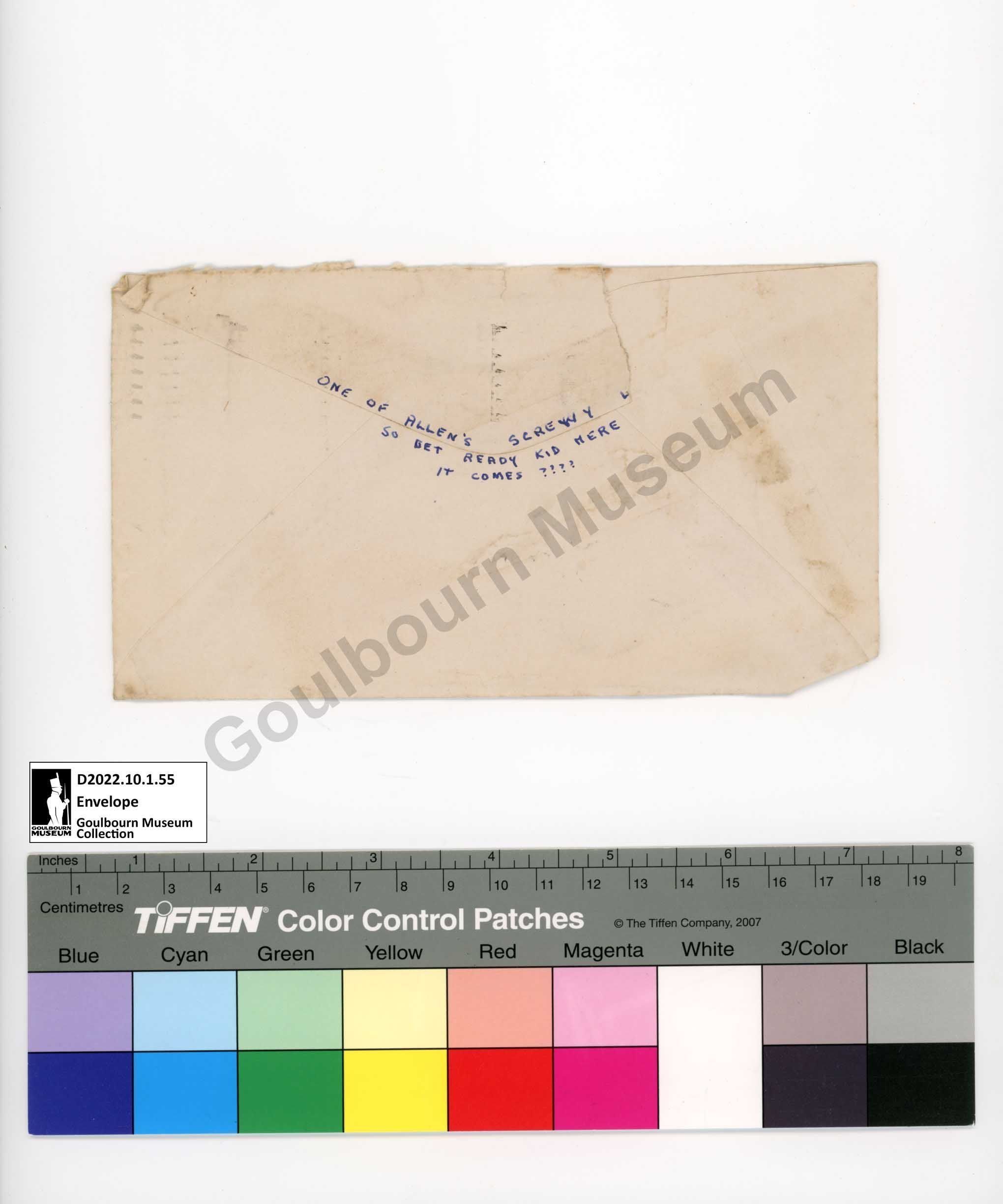 [Reverse of envelope]