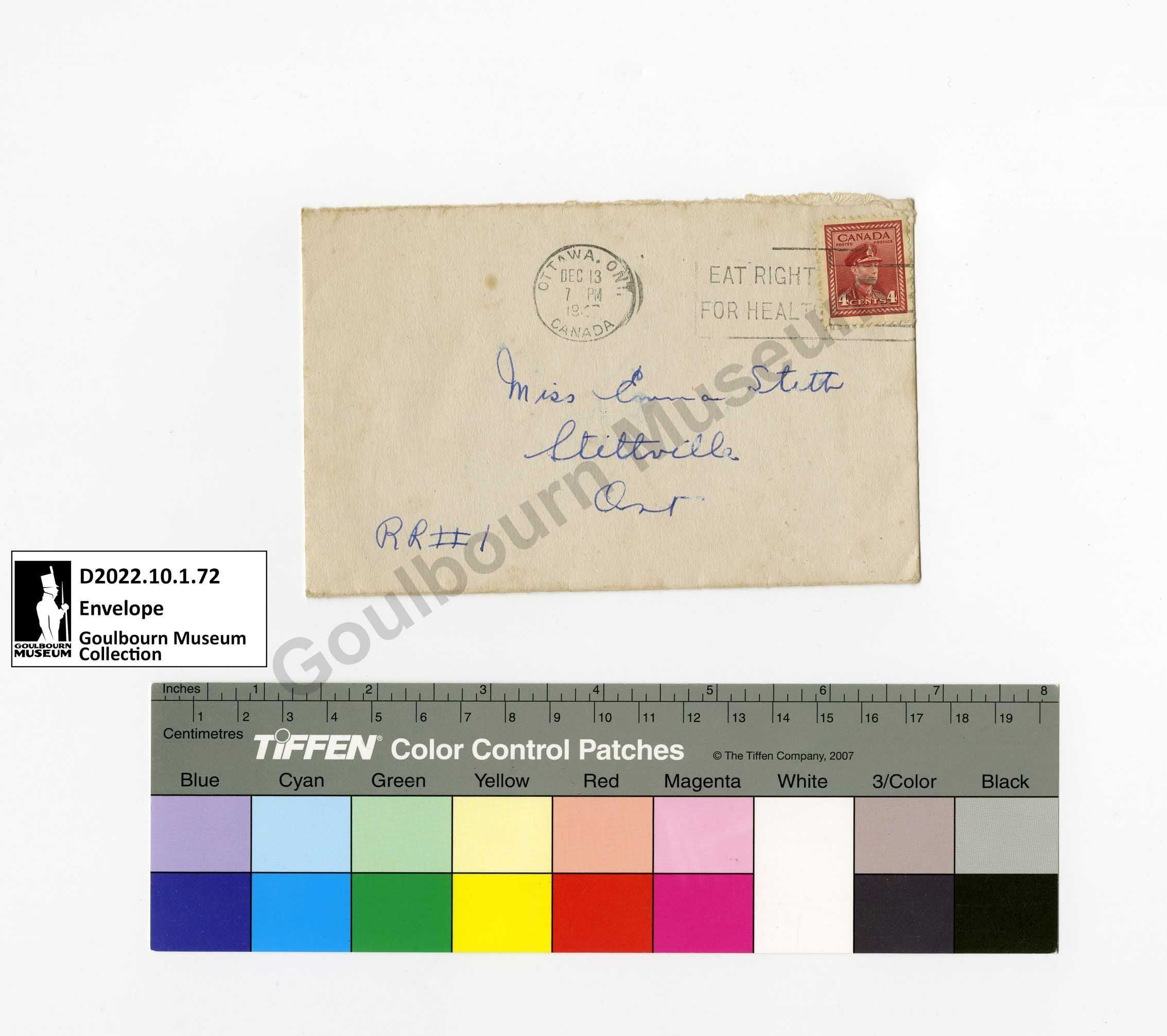 Posted envelope addressed to Emma Stitt of Stittsville.
