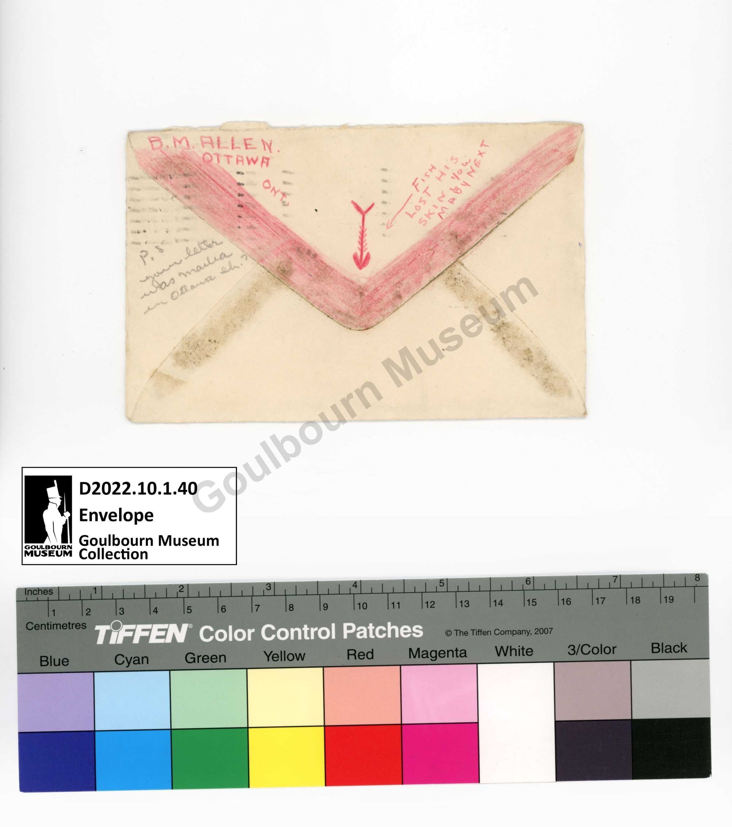 Posted envelope missing letter. Addressed to Miss Emma Stitt of Stittsville. From Beverly M. Allen of Ottawa.Subject Person/Organization