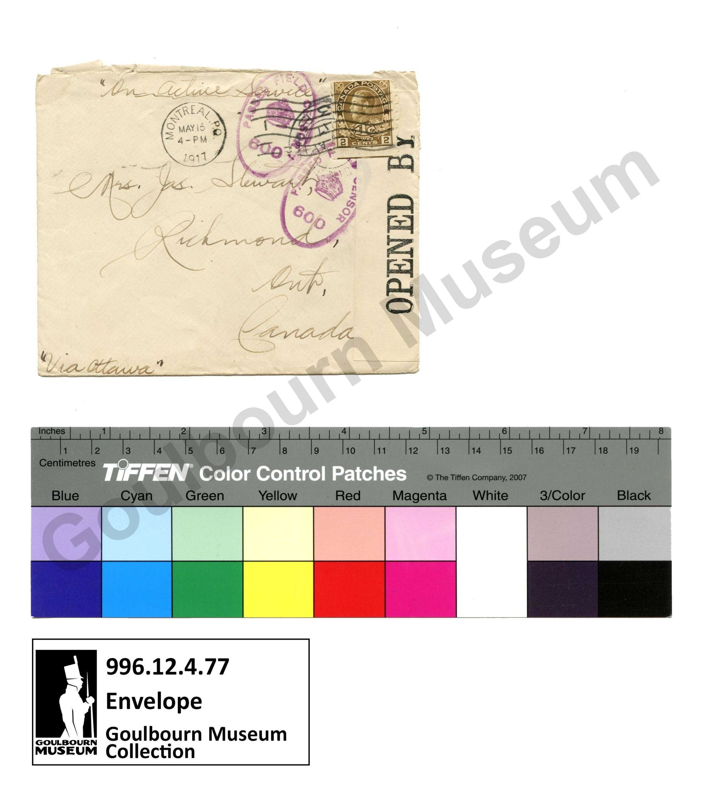 Envelope: Sefton Stewart to Margaret Stewart, May 1917Entry/Object ID