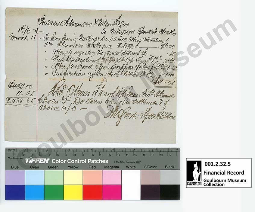 Andrew Alexander, Receipt, Financial Record, Wilson ArgueLegacy Lexicon