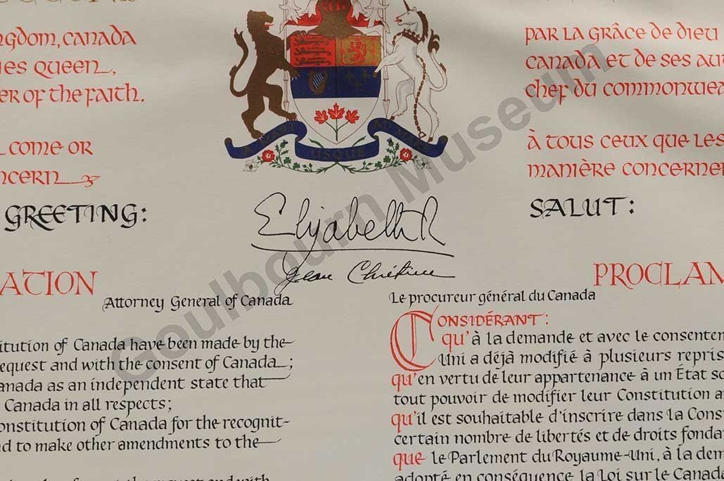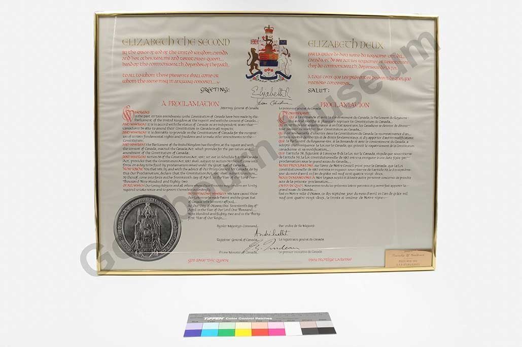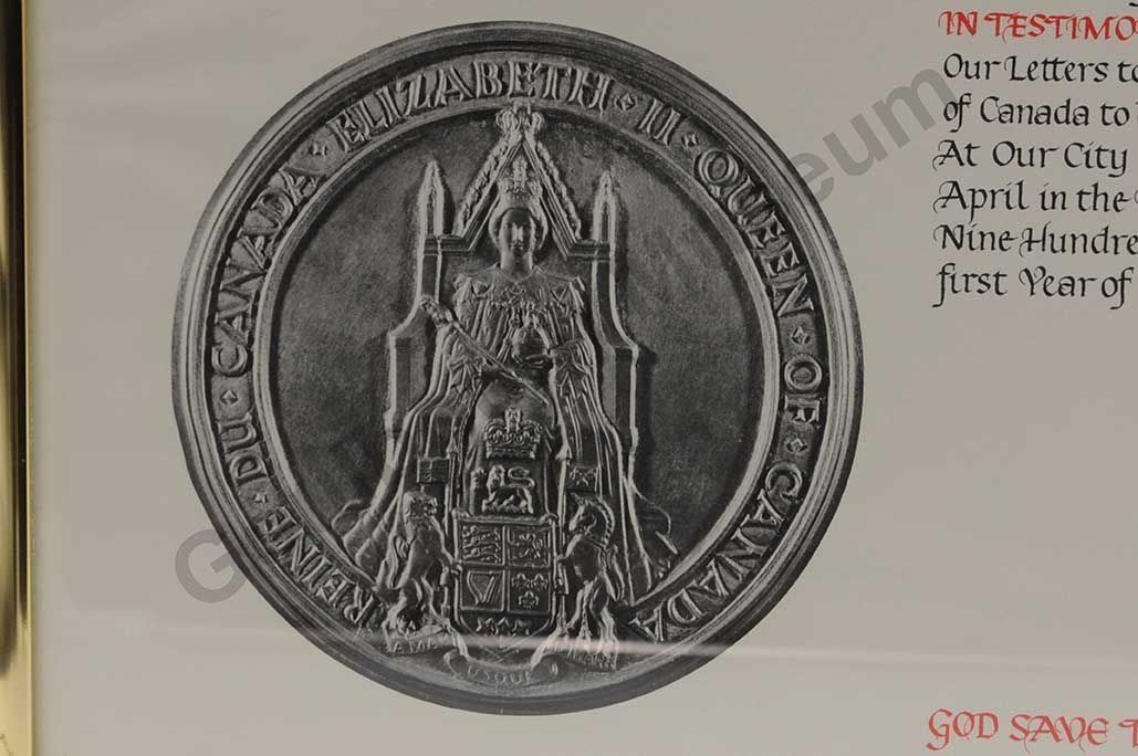 A framed proclamation from Queen Elizabeth the second. Goulbourn Township Hall collection.Collection