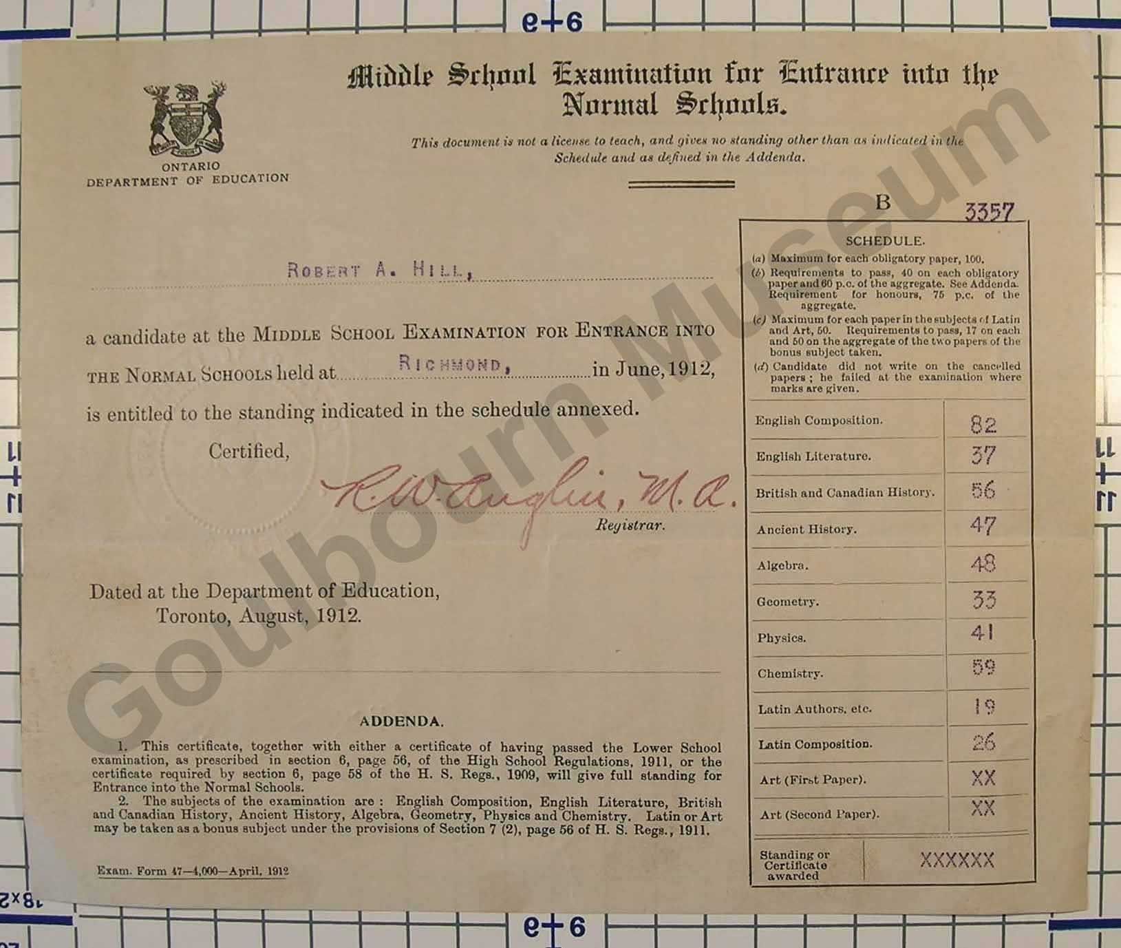 Belonged to Robert A. L. Hill of Munster, who was the donor's father. Robert Hill was born in 1893, and served in the First World War.Lexicon
