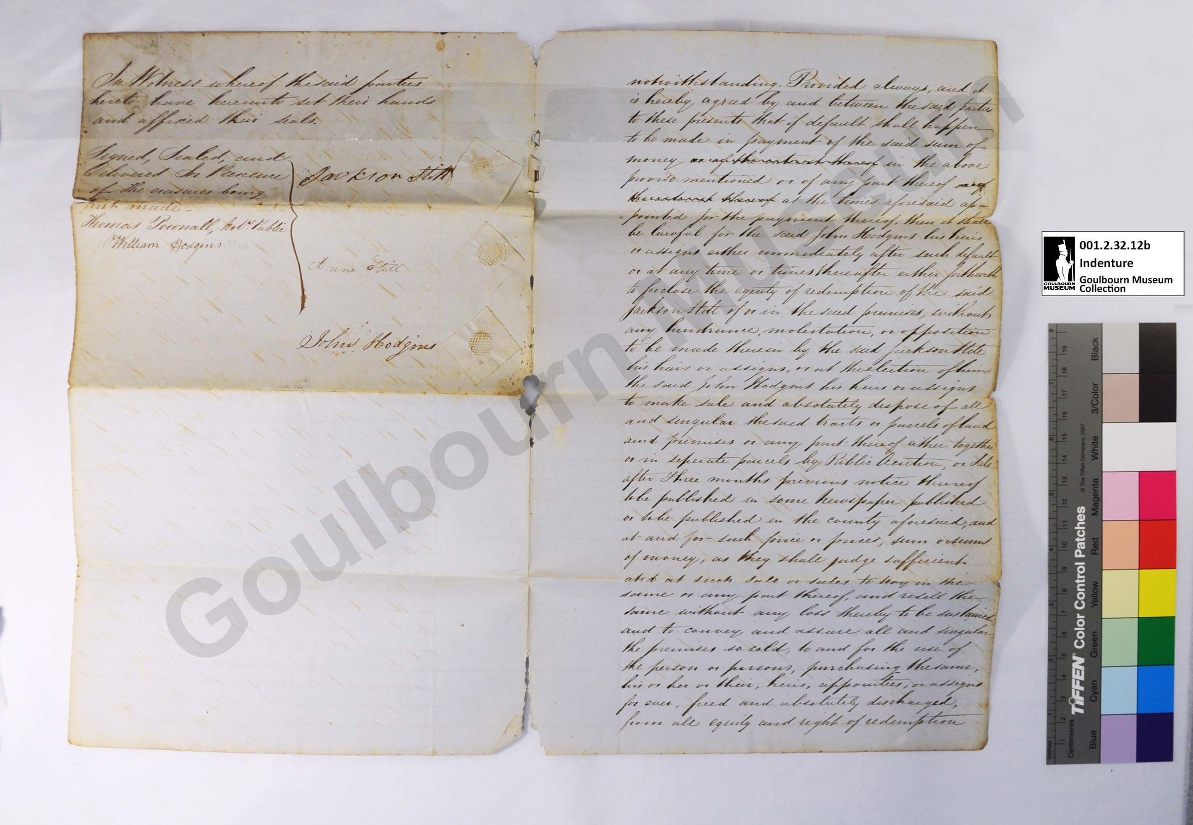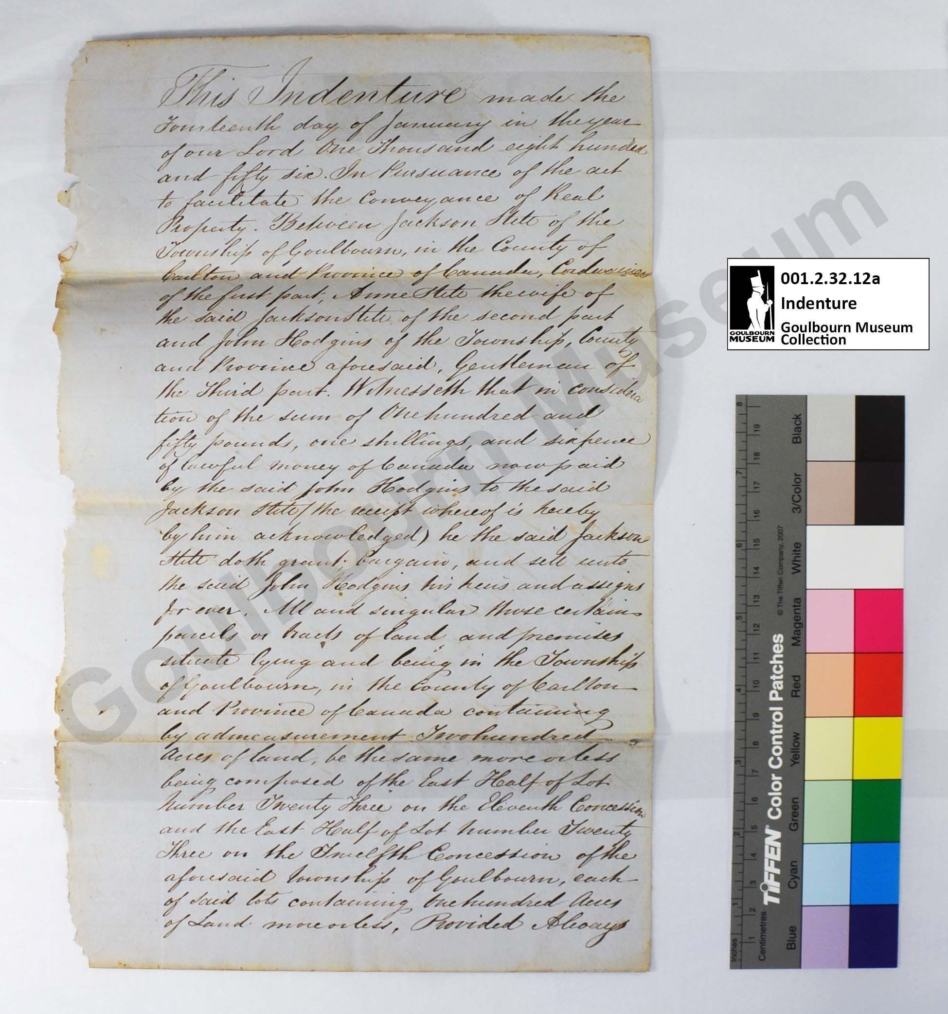 Indenture: Jackson Stitt and John Hodgins, E1/2 Lot 23 Concession 12, 1856Entry/Object ID