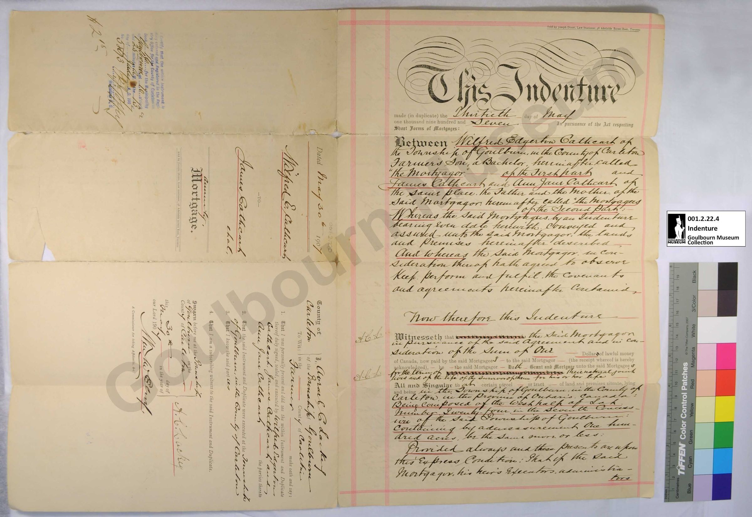 Indenture, Mortgage: Wilfred Cathcart and James Cathcart W1/2 Lot 24 Concession 7 1907Entry/Object ID
