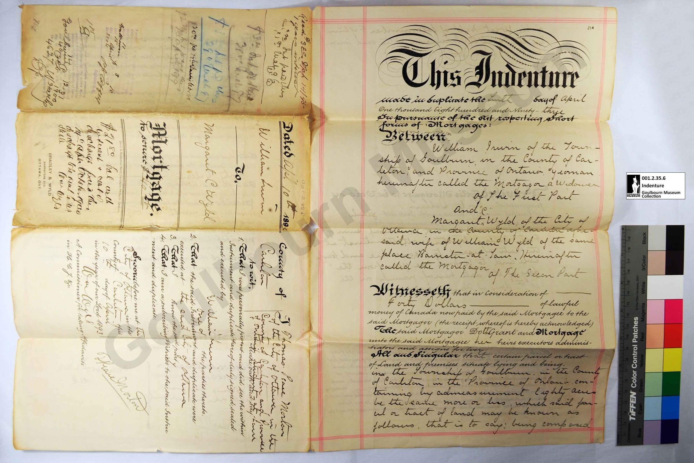 Indenture, Mortgage: William Irwin and Margaret C. Wyld, W1/2 Lot 15 Concession 12, 1893Entry/Object ID