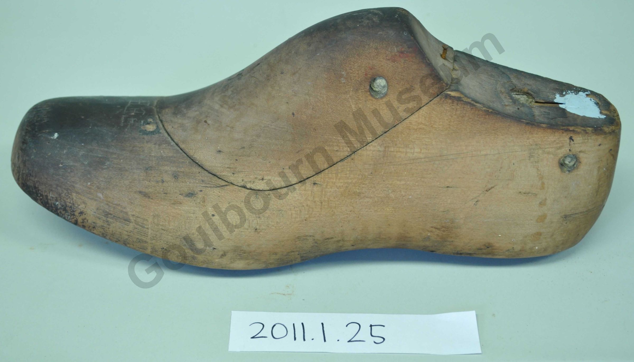 wooden shoes last, 2 pieces, impressed 10 fff on upper side reads 808 ROBIN BROS, MONTREAL.