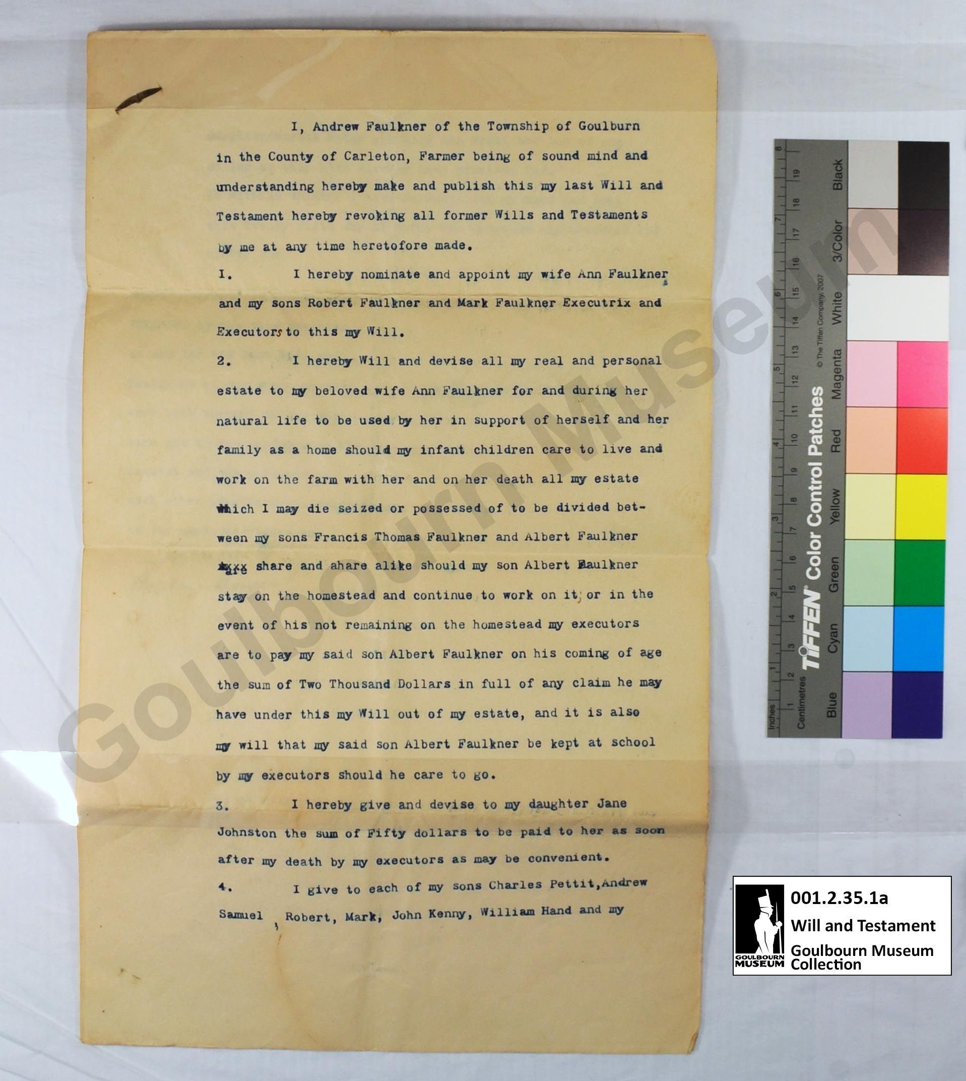 Last Will and Testament: Andrew Faulkner, 1891Entry/Object ID