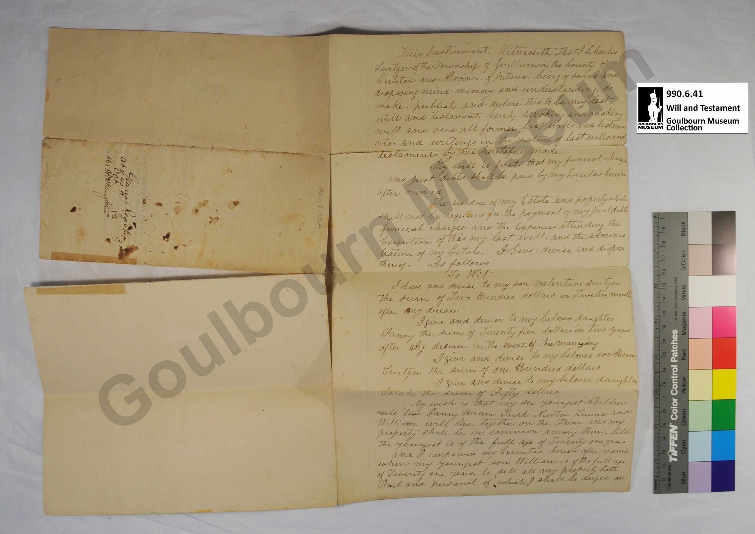 This object provides information about an individual from a historical family from the Goulbourn area. It is linked to the Switzer family who were some of the original settlers in the Goulbourn area through Charles Schweitzel, an immigrant from Spain (the family was renamed Switzer at an unknown date).Lexicon