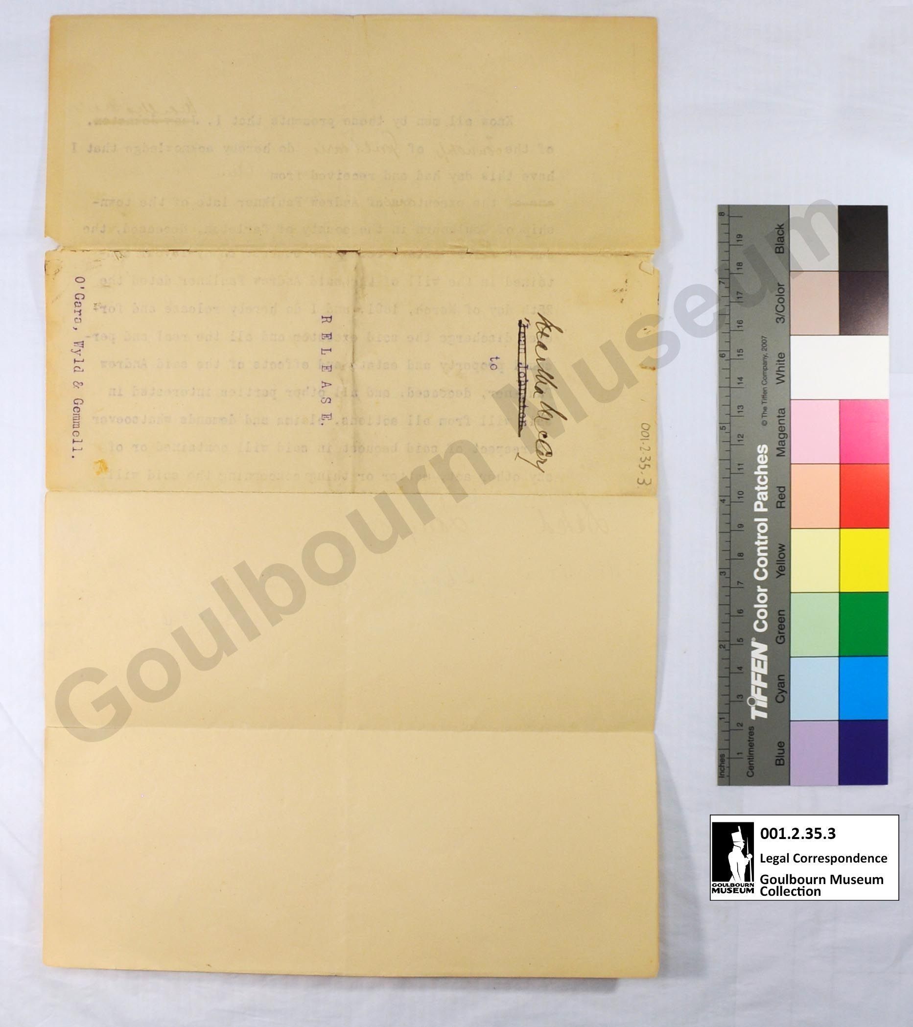 Legal Correspondence: Will Release 1898Entry/Object ID