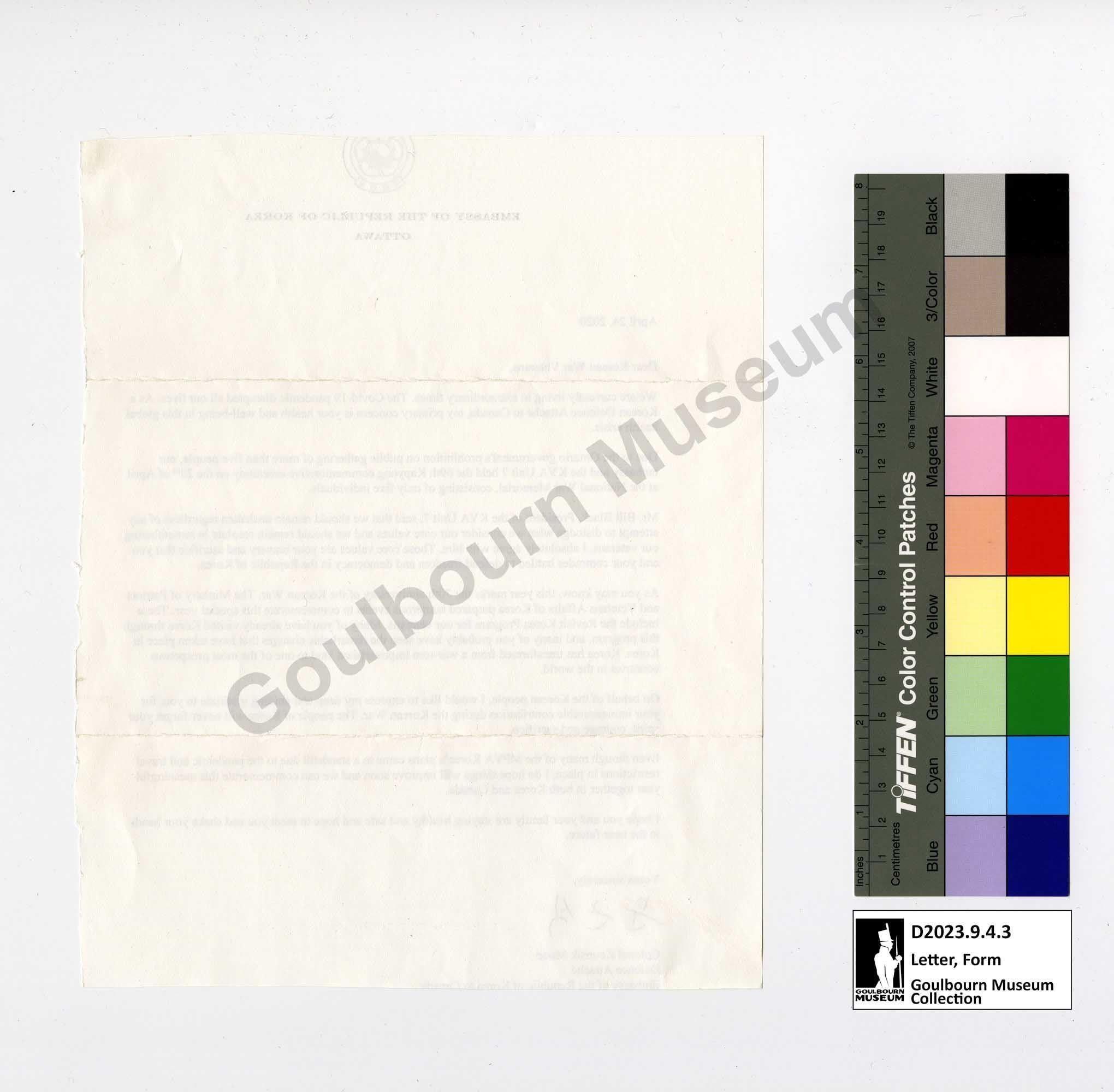 Letter, Form: Embassy of the Republic of Korea to CanadaEntry/Object ID
