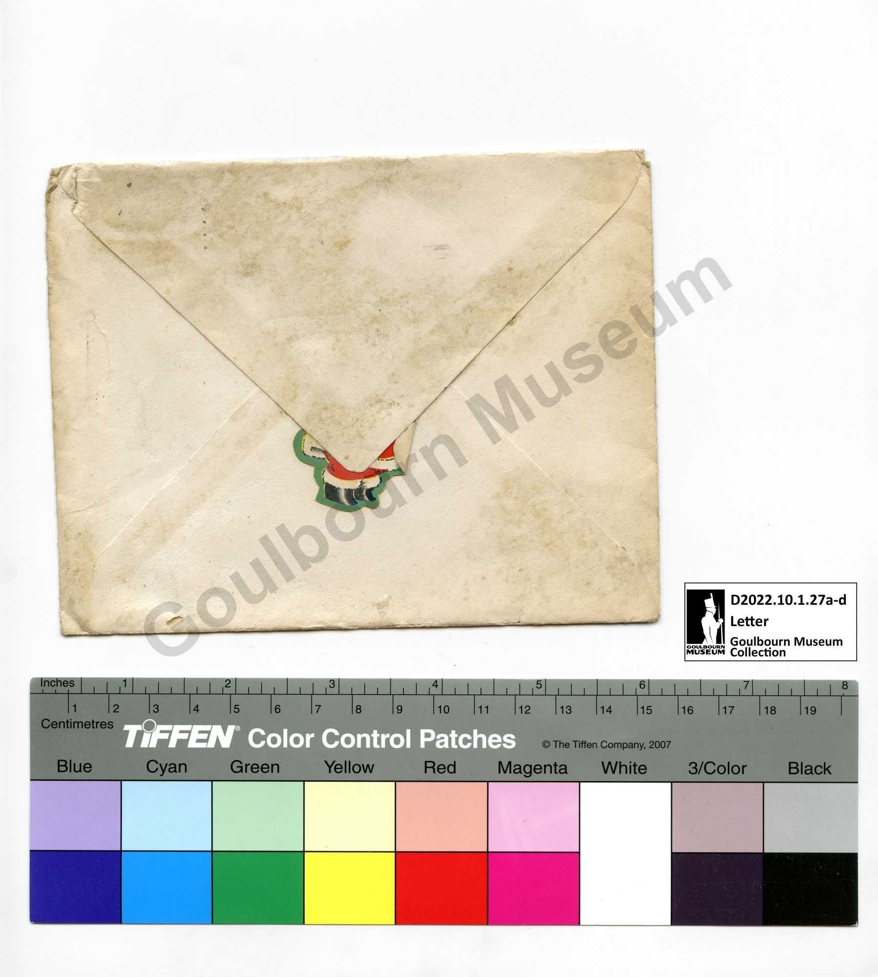 [Envelope, Back] [small coloured Santa Claus sticker]Transcriber