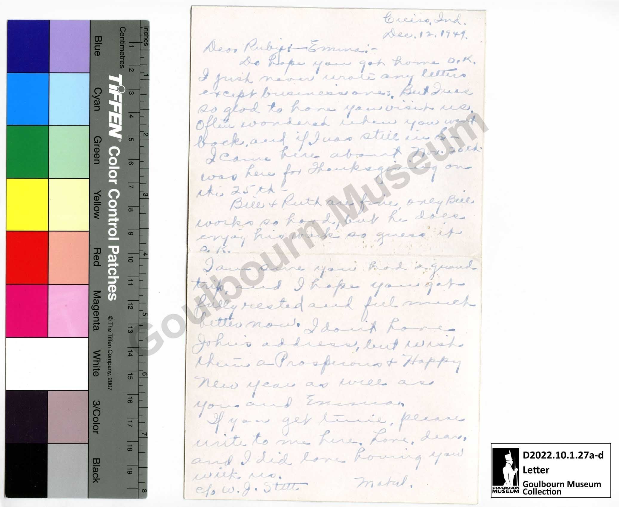 Cicero, Ind. [abbreviated: Indiana] Dec. [abbreviated: December] 12, 1949.