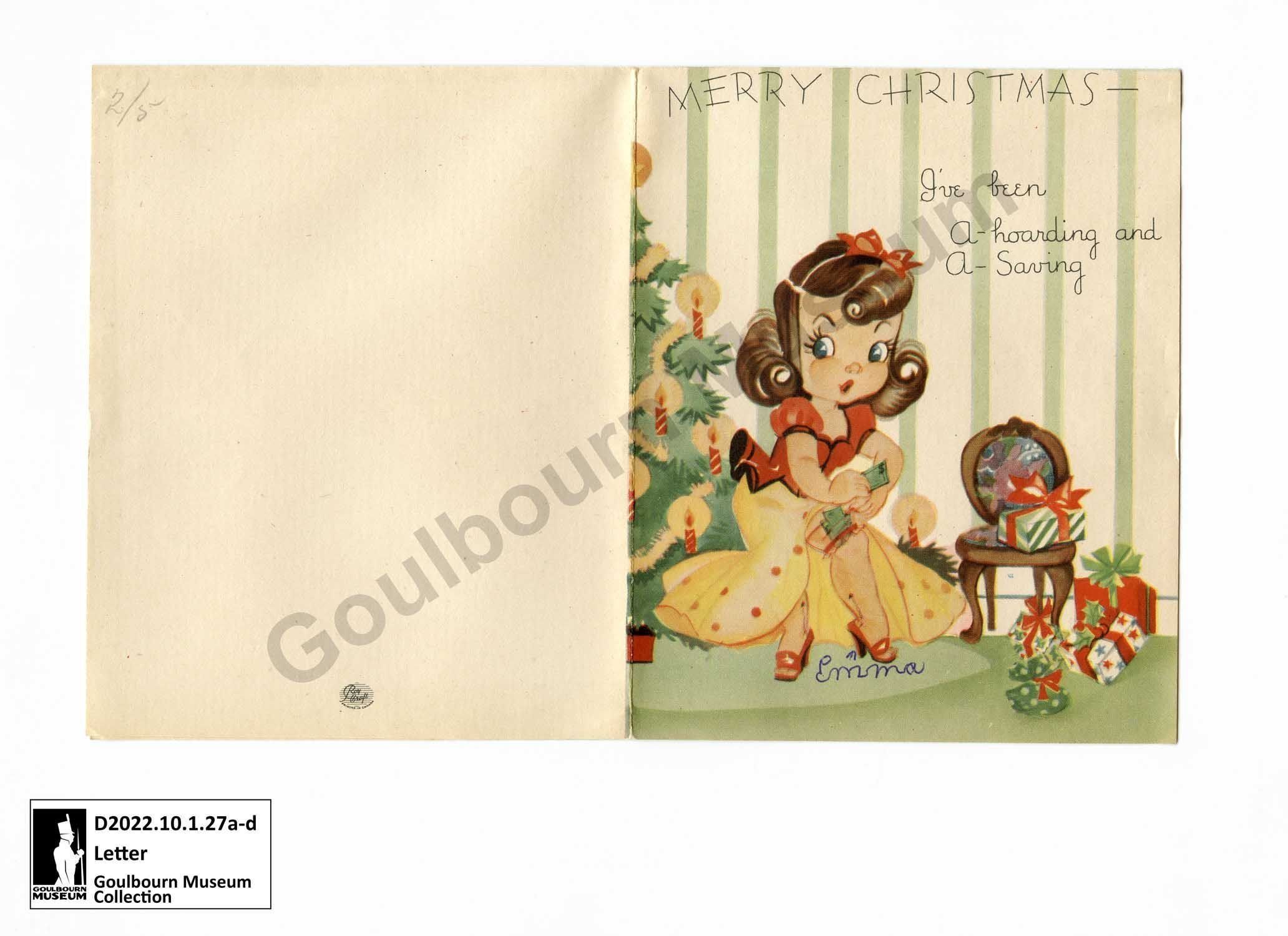 MERRY CHRISTMAS -- I've [abbreviated: I have] been A-hoarding and A-saving [arrow] Emma