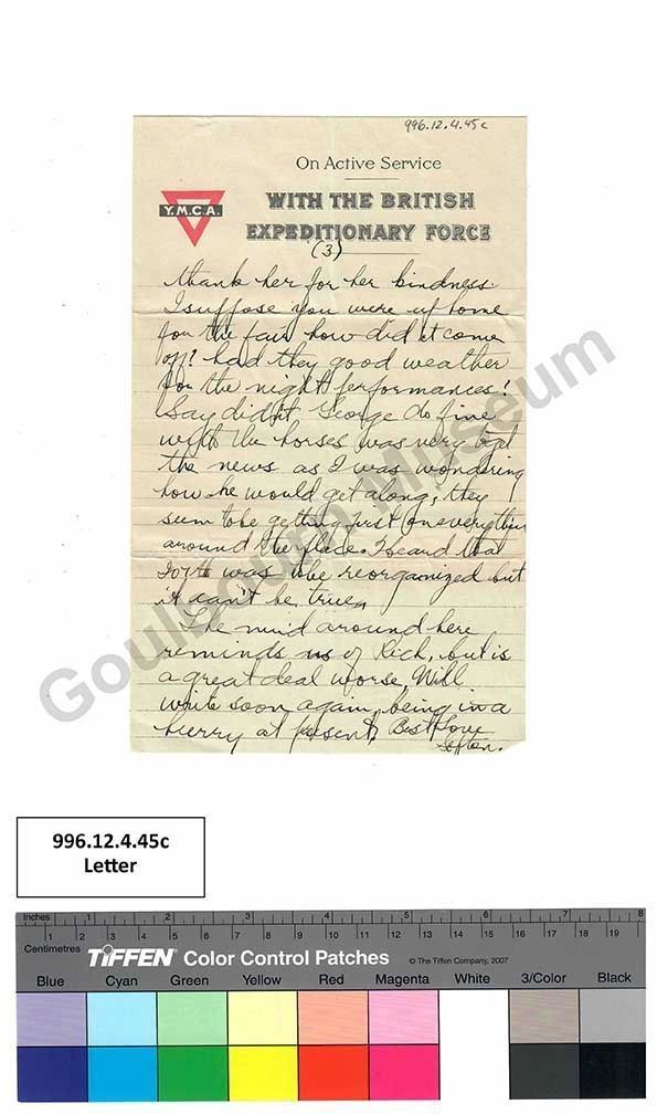 thank her for her kindness. I suppose you were at home for the fair how did it come off? had they good weather for the night performances? Say didn’t George do fine with the horses was very to get the news as I was wondering how he would get along, they seem to be getting first on everything around the place. Heard that 207th was to be reorganized but it can’t be true.