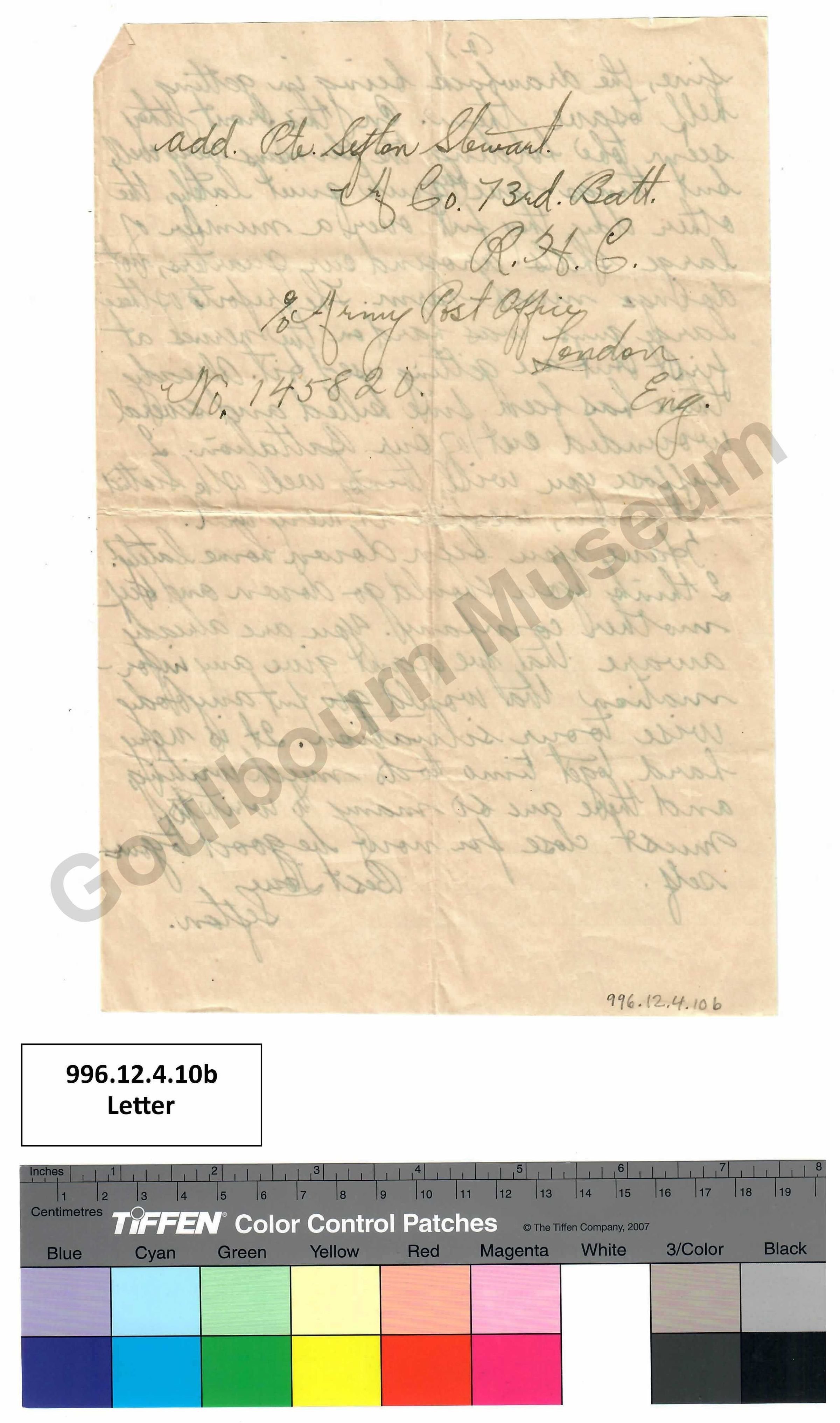 Handwritten letter, a part of the Sefton Stewart letters collection.Collection
