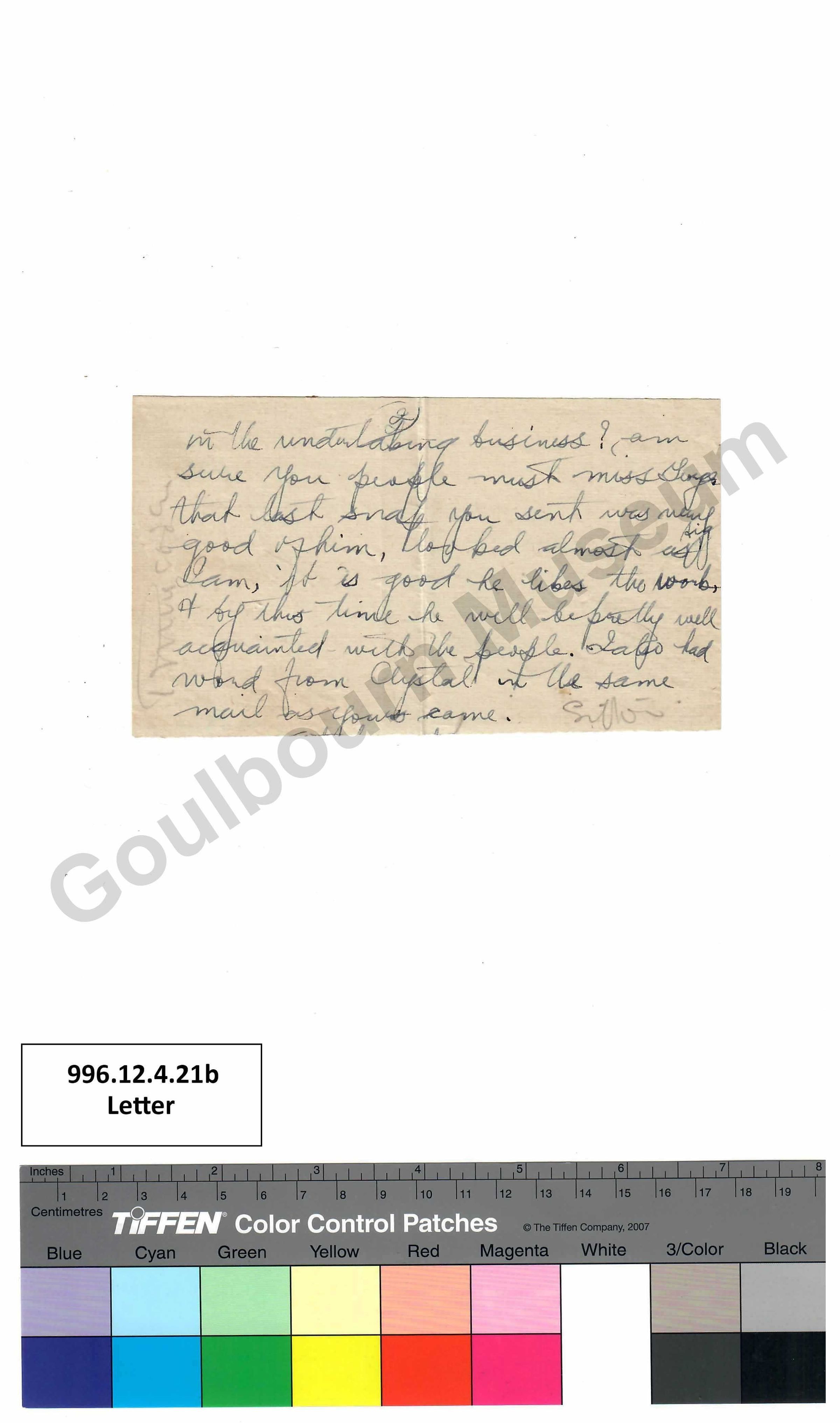 One handwritten letter from the collection of Richmond, Ontario resident Sefton Stewart.Collection