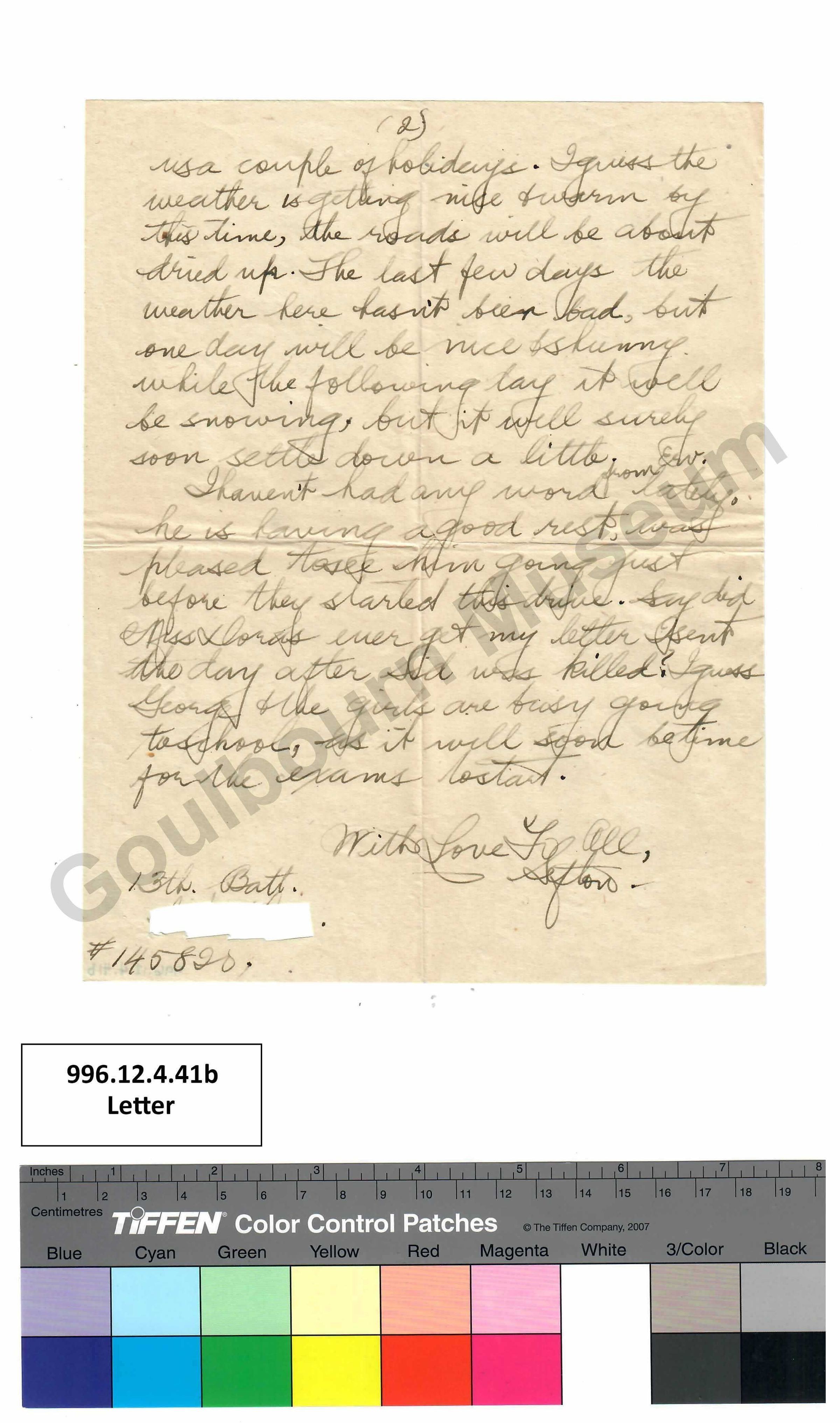 Handwritten letter, part of the collection of Sefton Stewart letters.Collection