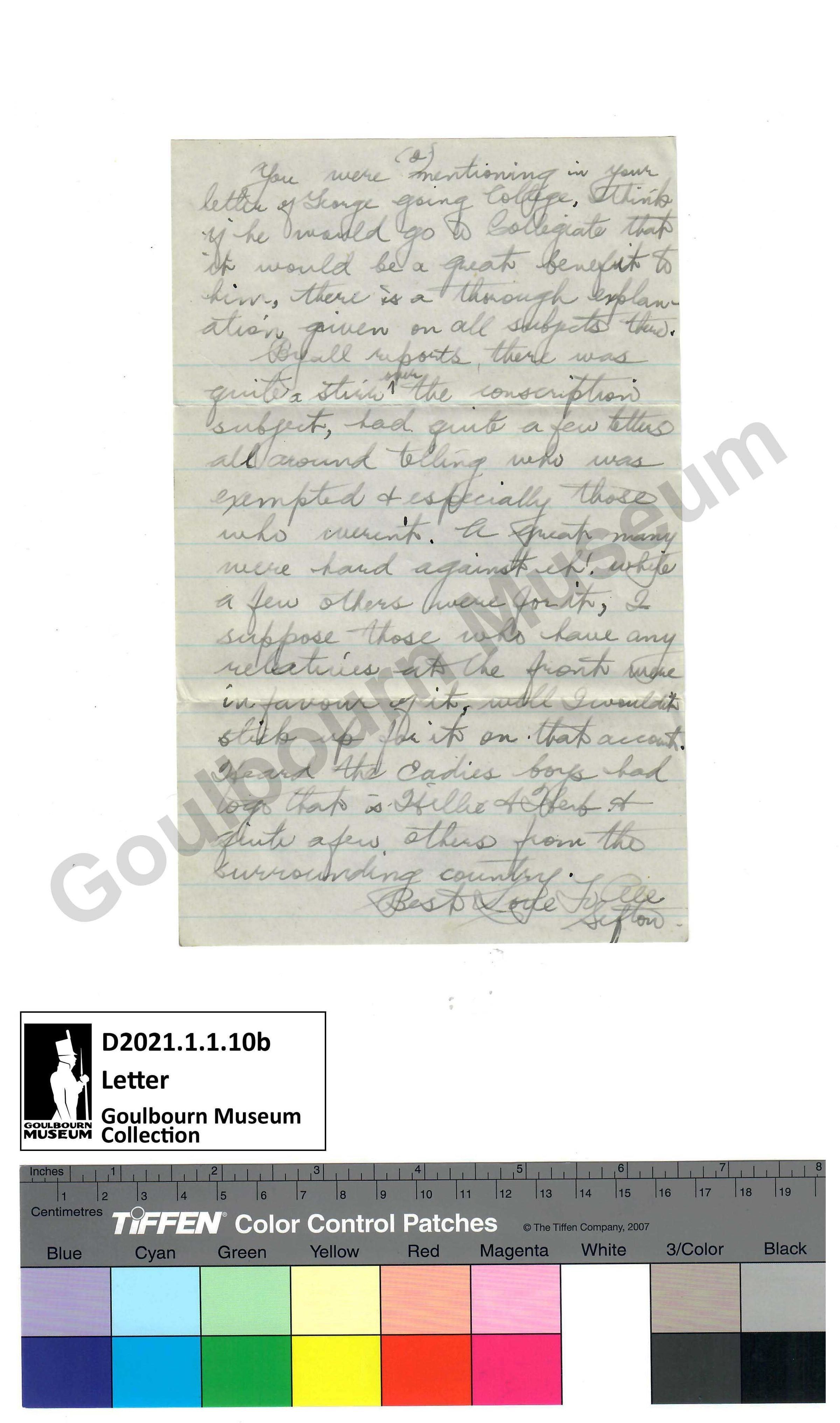 You were mentioning in your letter of George going to College, I think if he would go to Collegiate that it would be a great benefit to him, there is a thorough explan-ation given on all subjects there.
