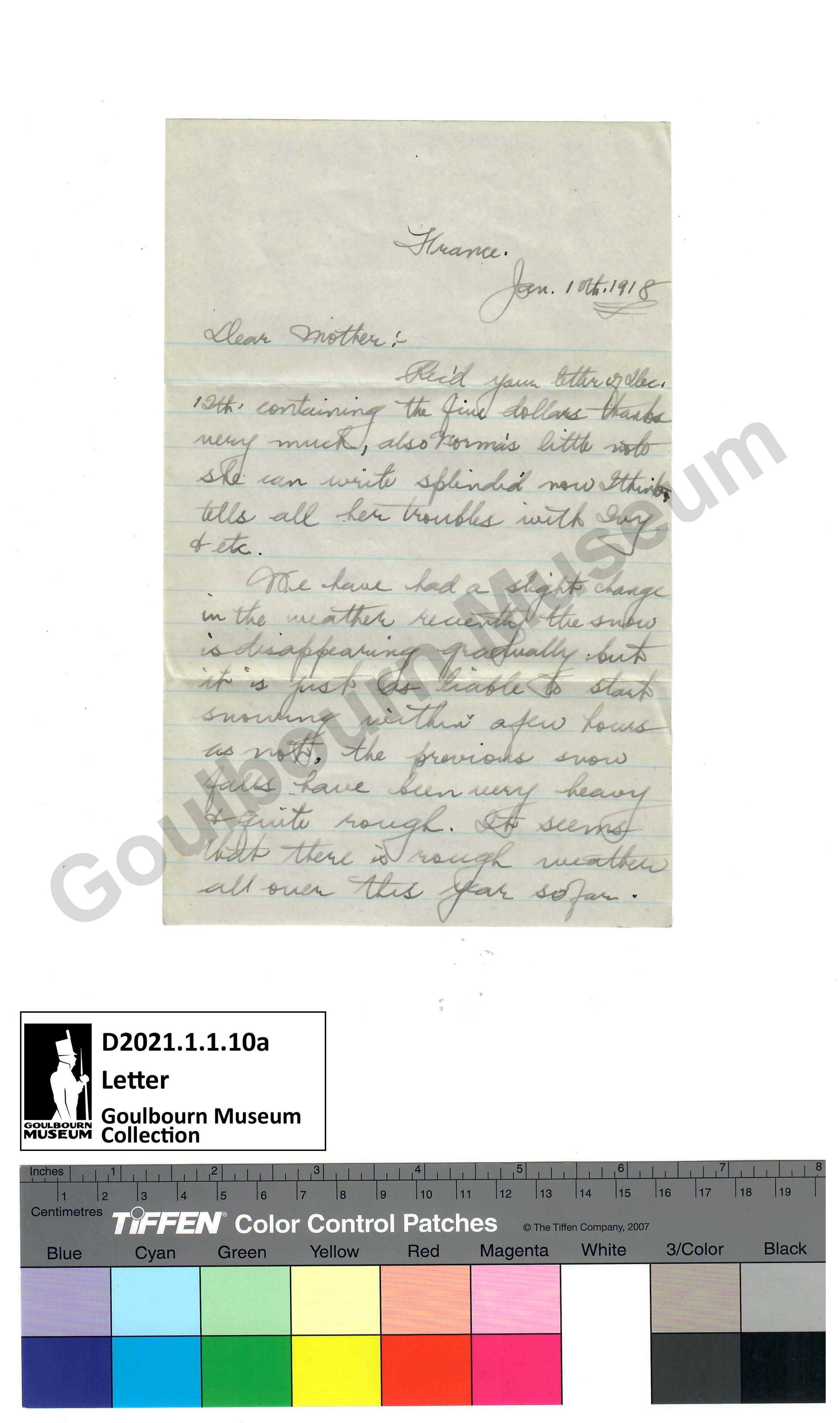 France. Jan. 10th, 1918 [abbreviated: January 10th, 1918]