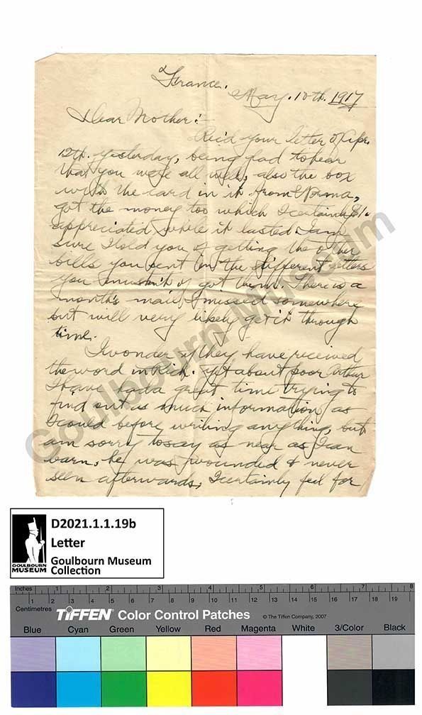 Letter: Sefton Stewart to Mother, May 10, 1917Entry/Object ID