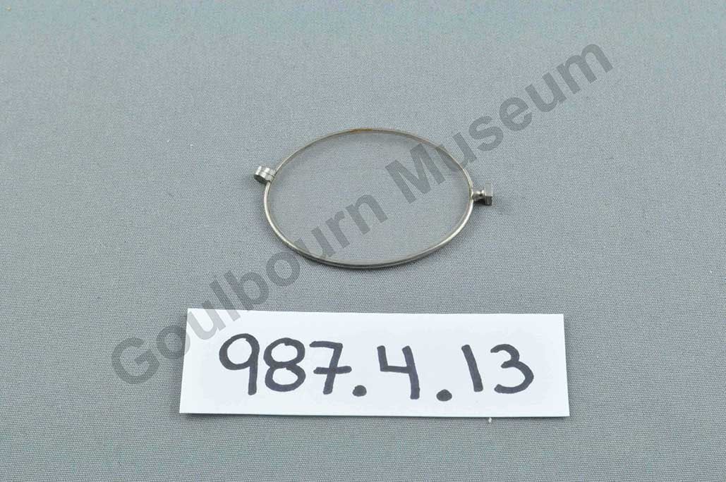 Single lens Lorgnette eyeglass with clear glass and thin metal rim.