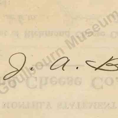 It can speculated with a very high degree of certainty that the number 34 corresponds in some way to a tracking, or identifying, number assigned to the farmer J.A. Brown. This is due to the fact that the primary text of the document on the front contains a field for name indicated by "Mr." and a blank line. Instead of a name however the number 34 was written in this field. This corresponds to the number 34 which appears on the inscription.Lexicon