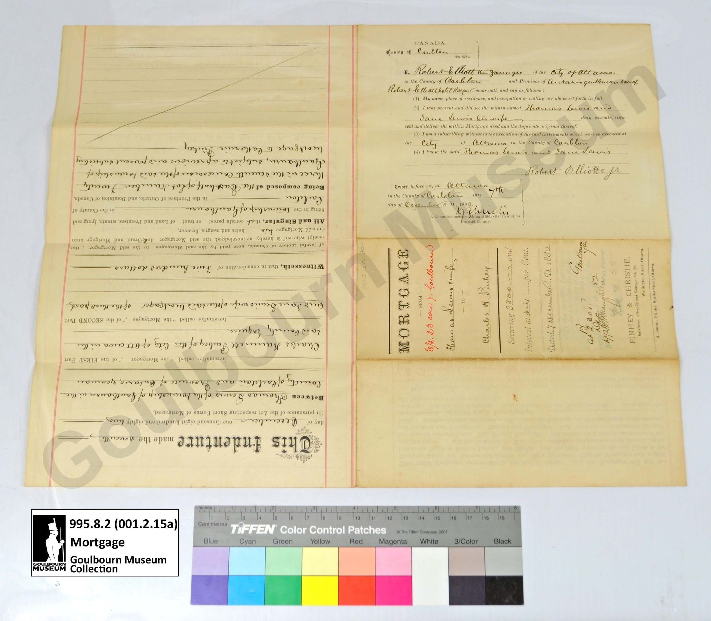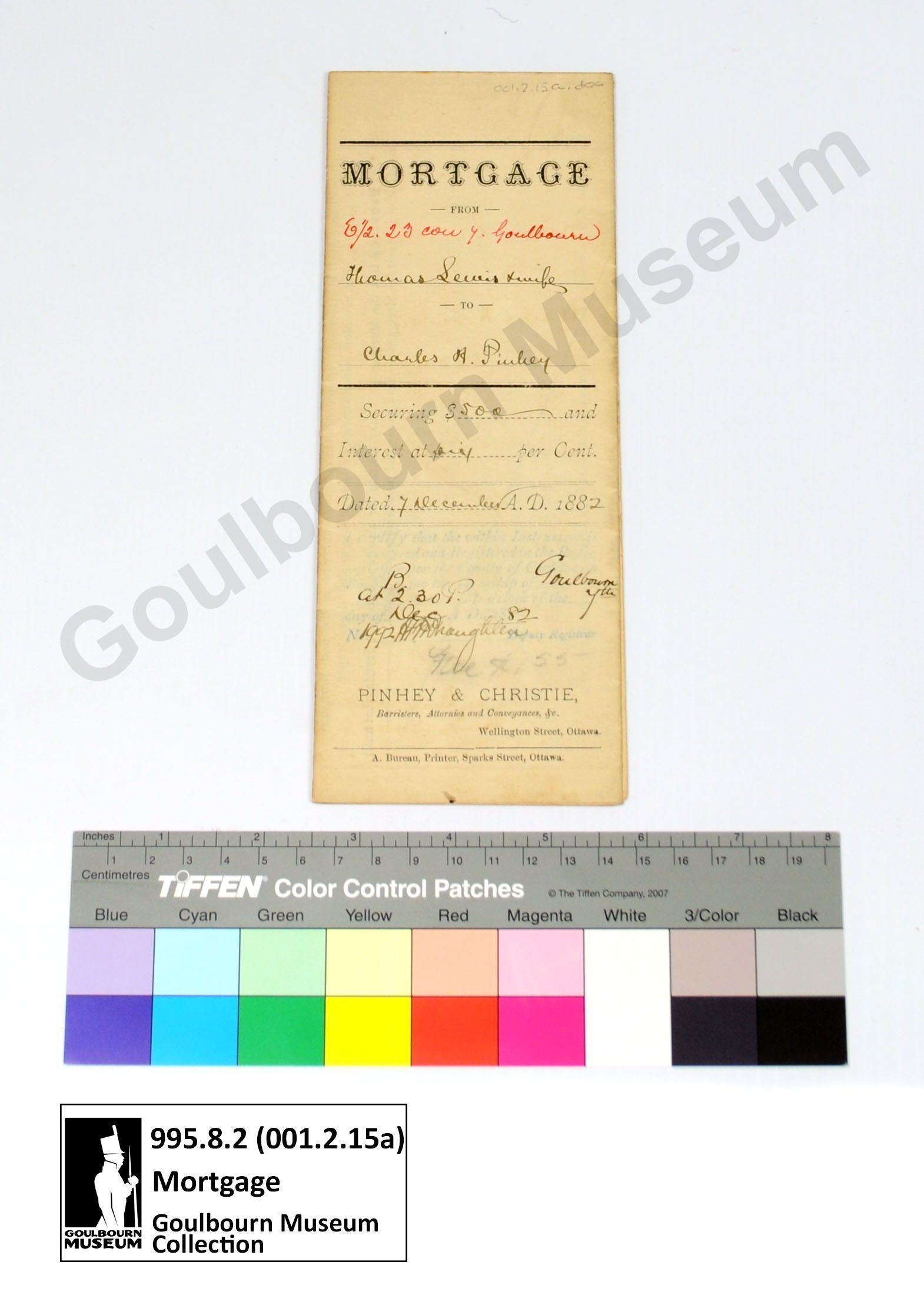 Mortgage: E 1/2 lot 23 Con 7 Goulbourn, Thomas Lewis, Charles H. Pinhey, 1882Entry/Object ID