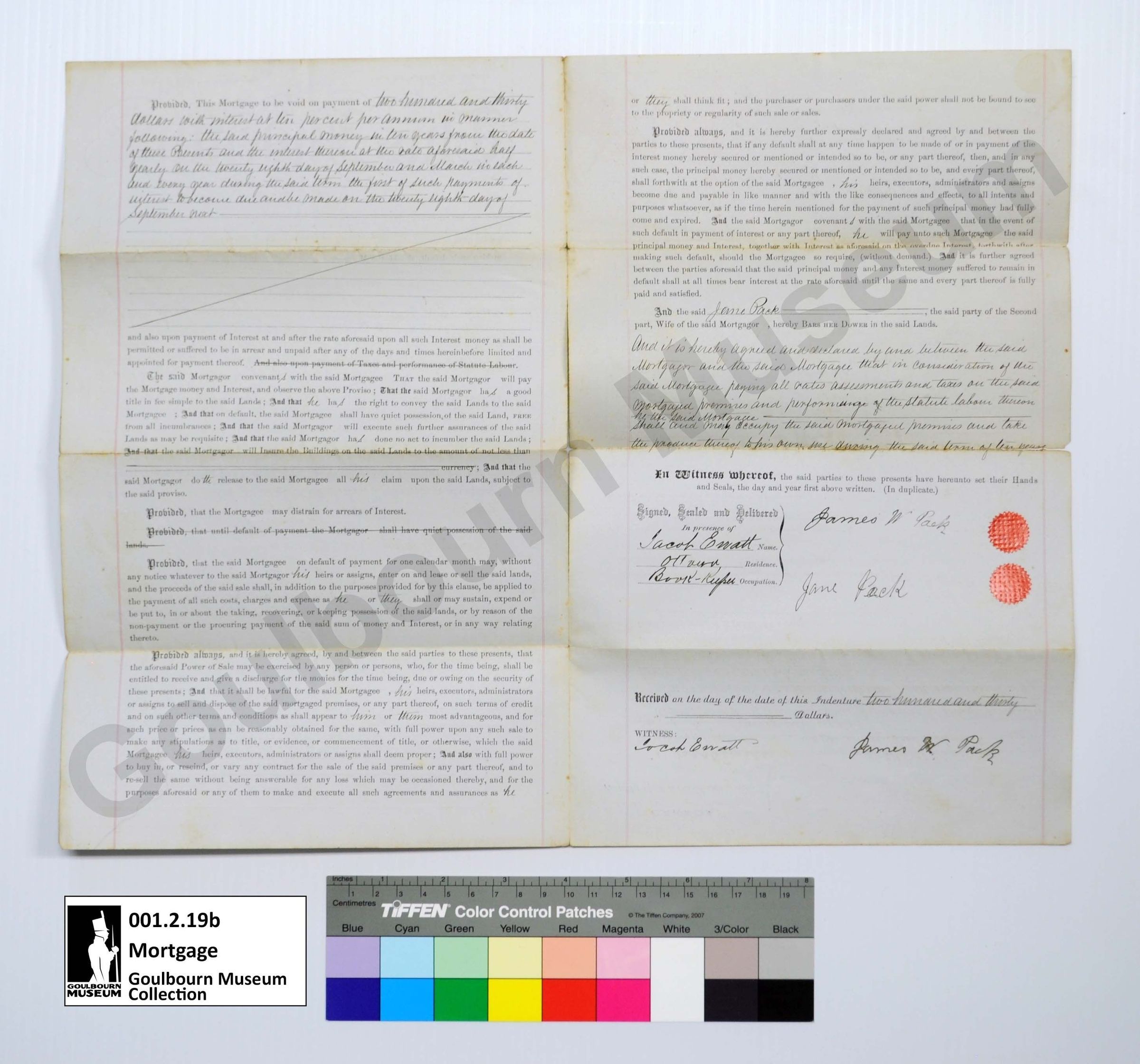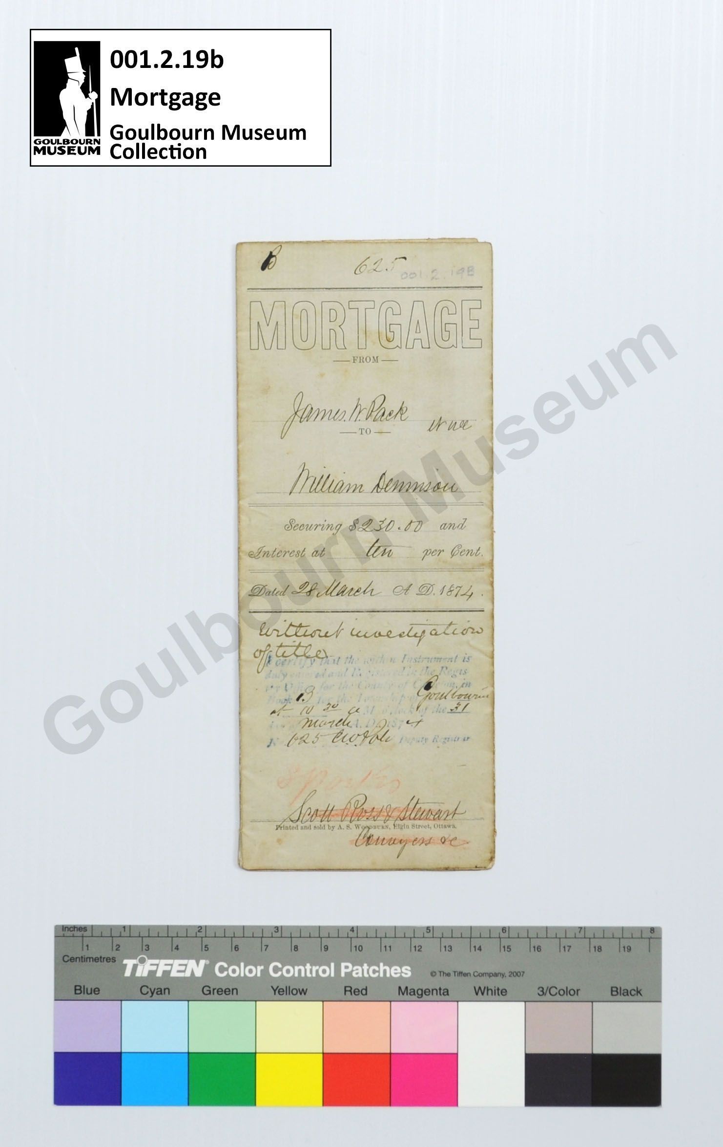 Mortgage: James W Pack, William Dennison, 1874Entry/Object ID