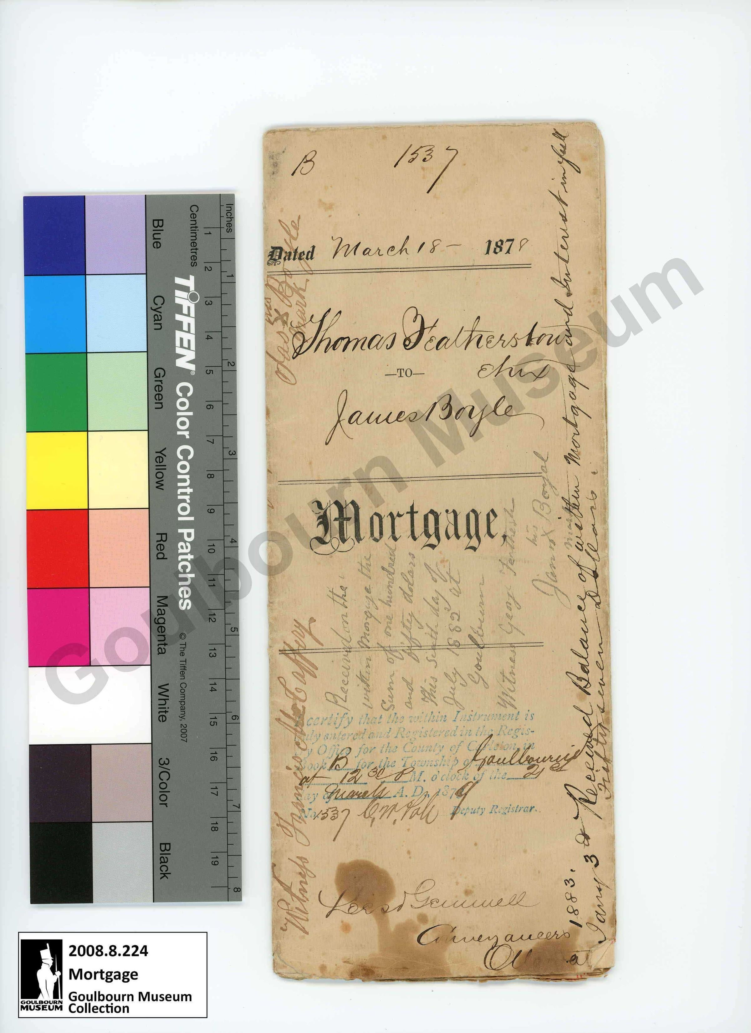 Mortgage, Thomas Featherston to James Boyle, 1878Entry/Object ID