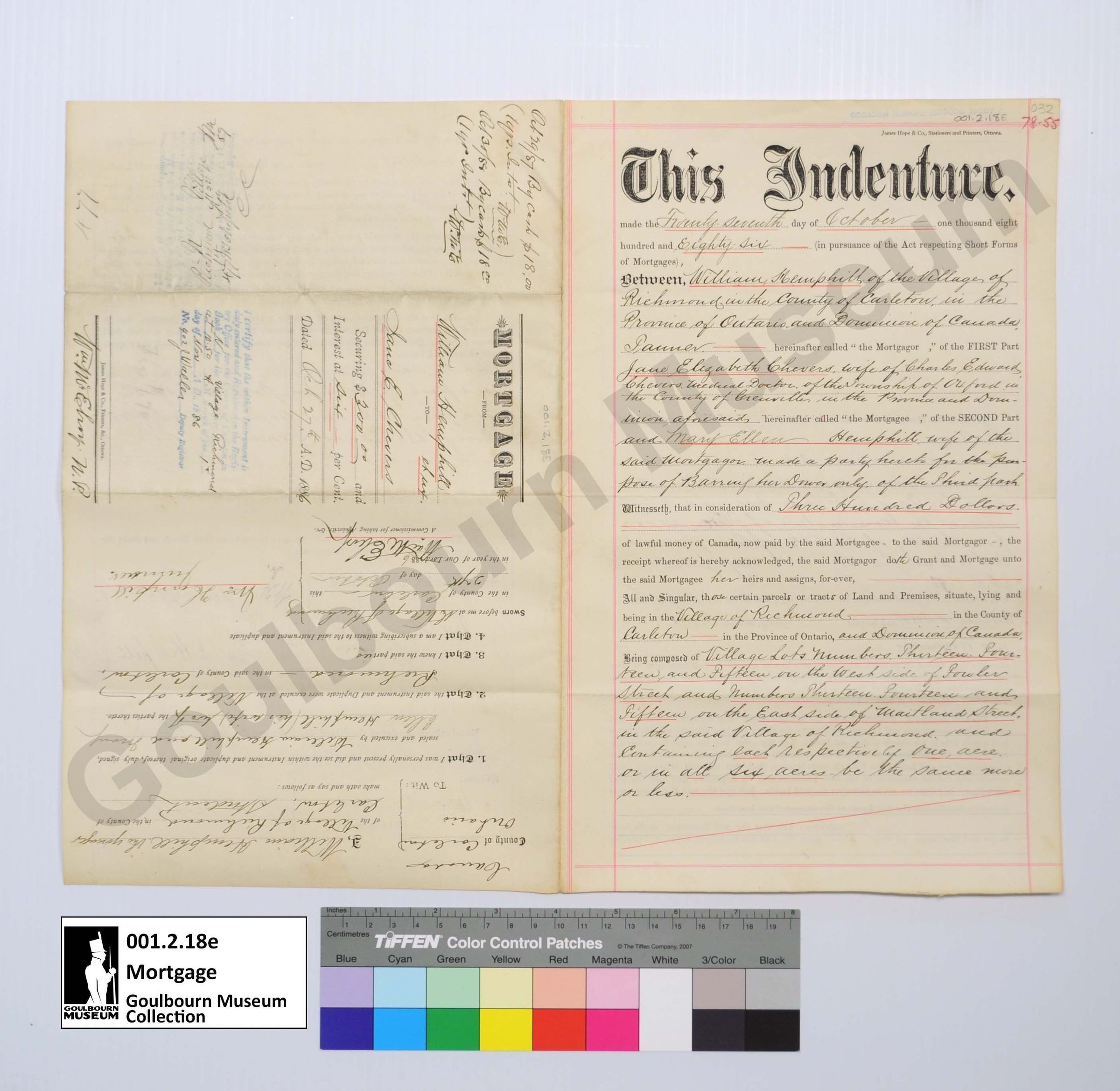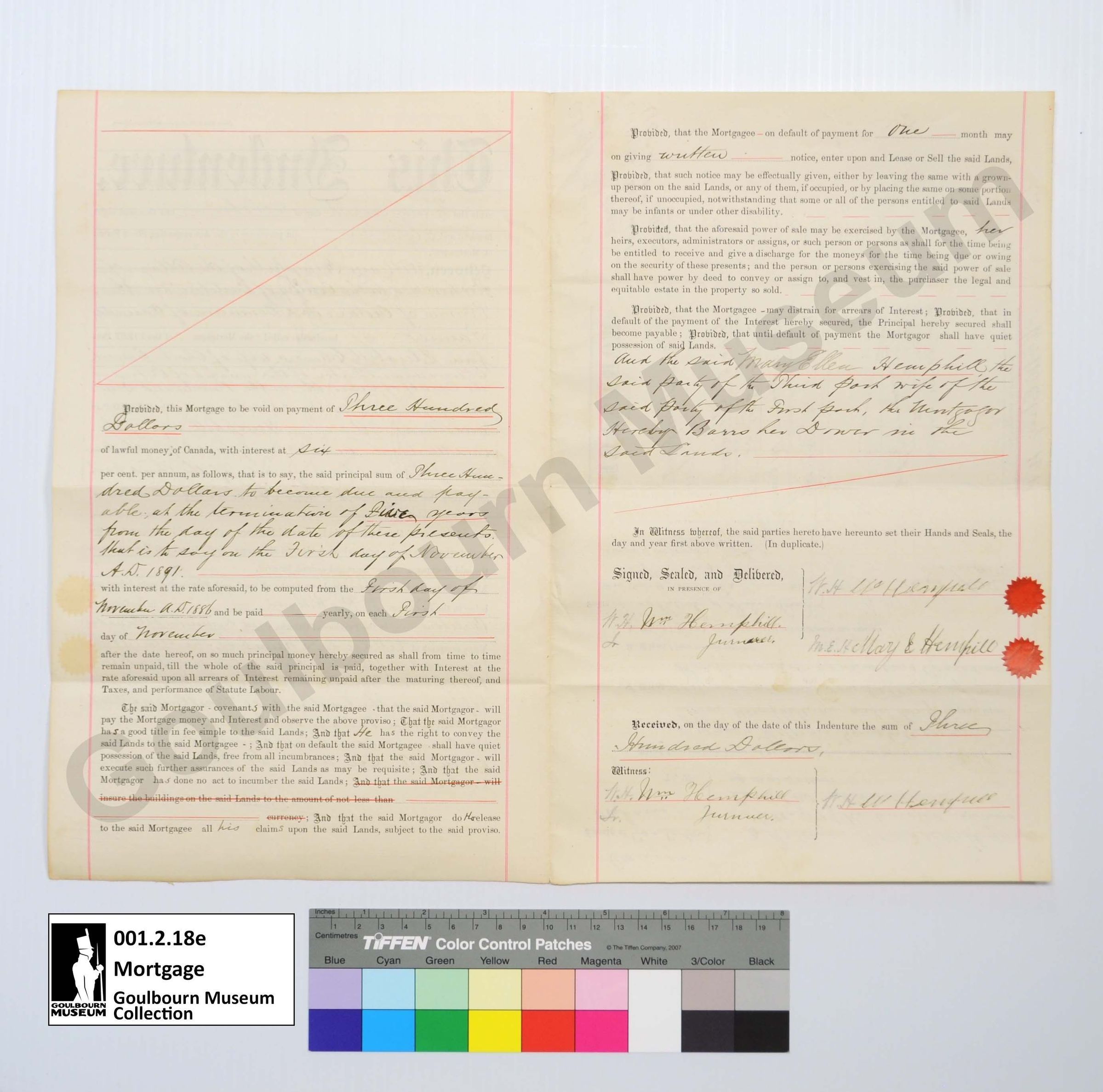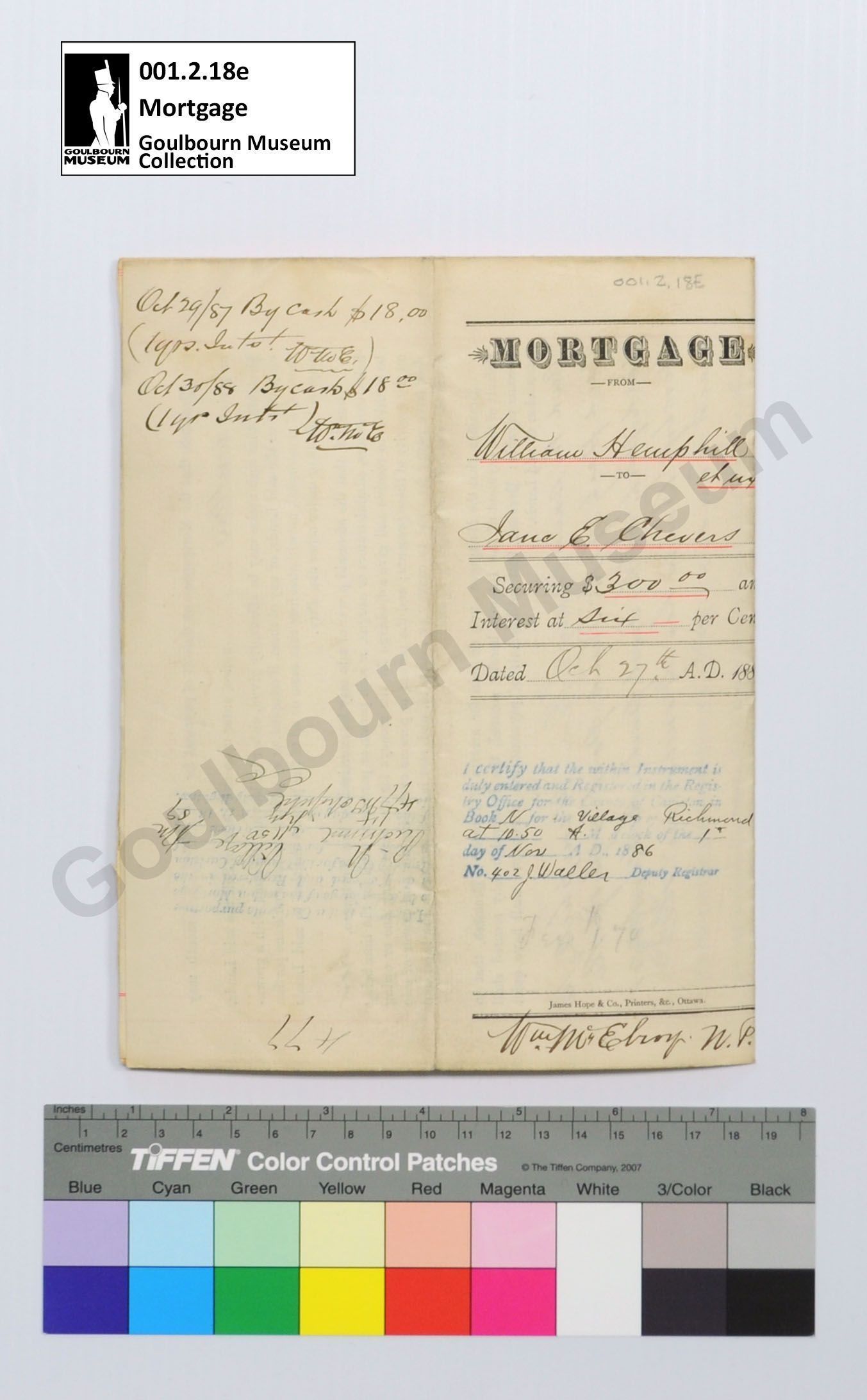 Mortgage: William Hemphill, Jane Chevers, 1886Entry/Object ID