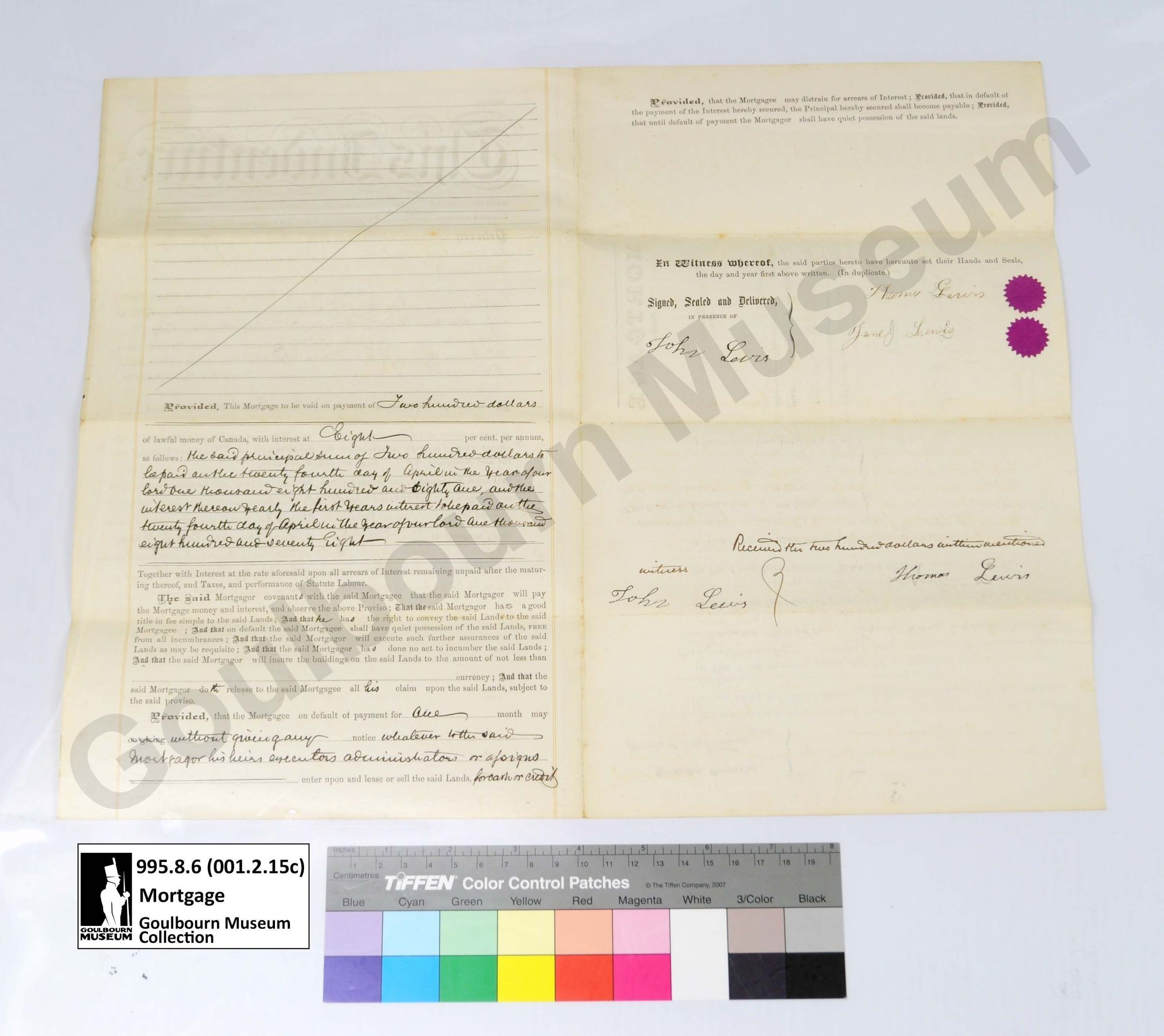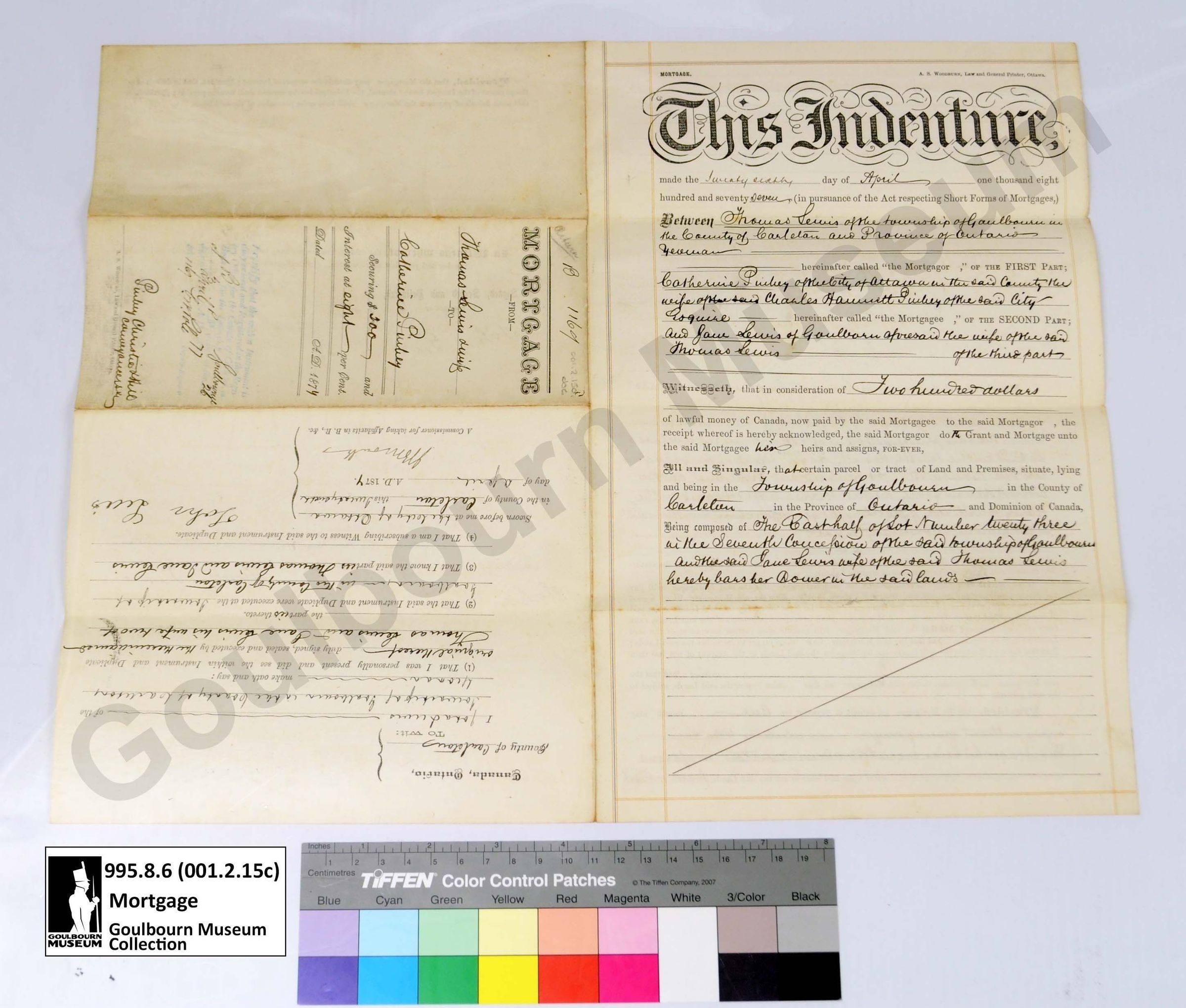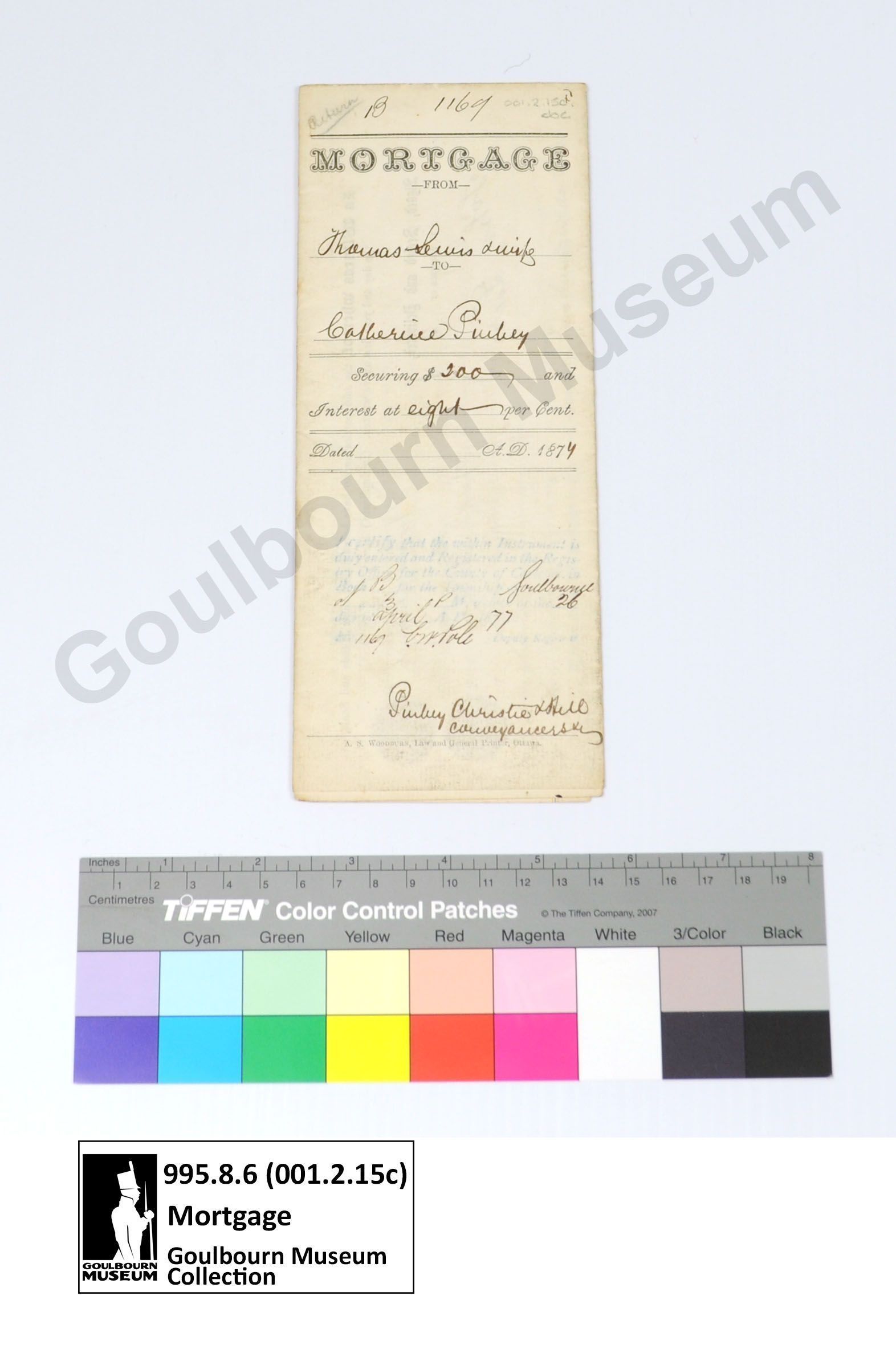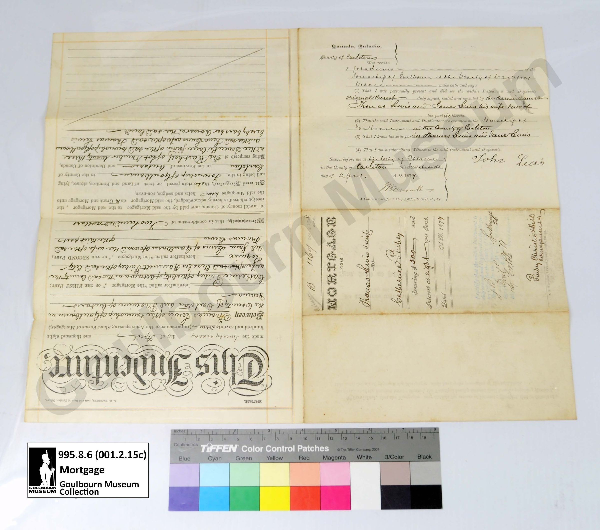 Muniment: Mortgage, Thomas Lewis, Charles H. Pinhey, 1874