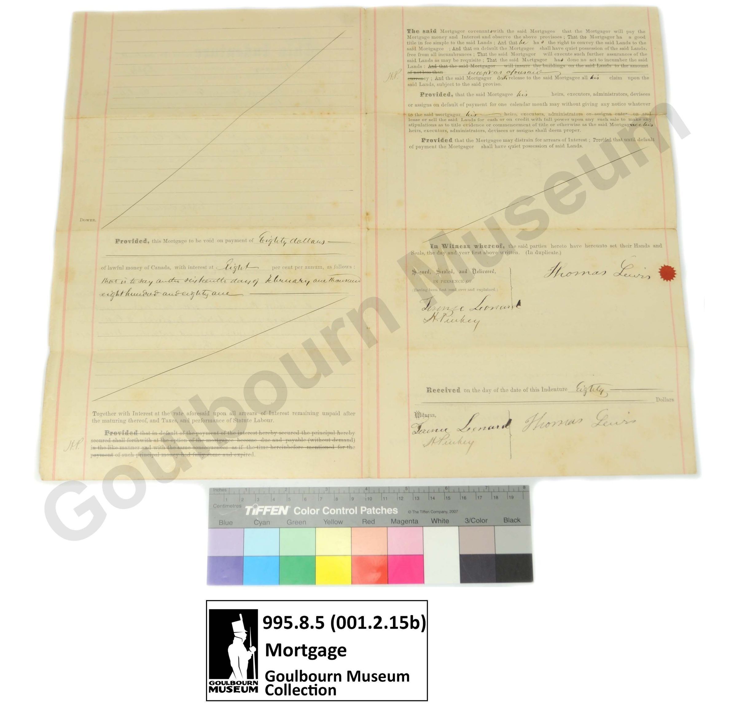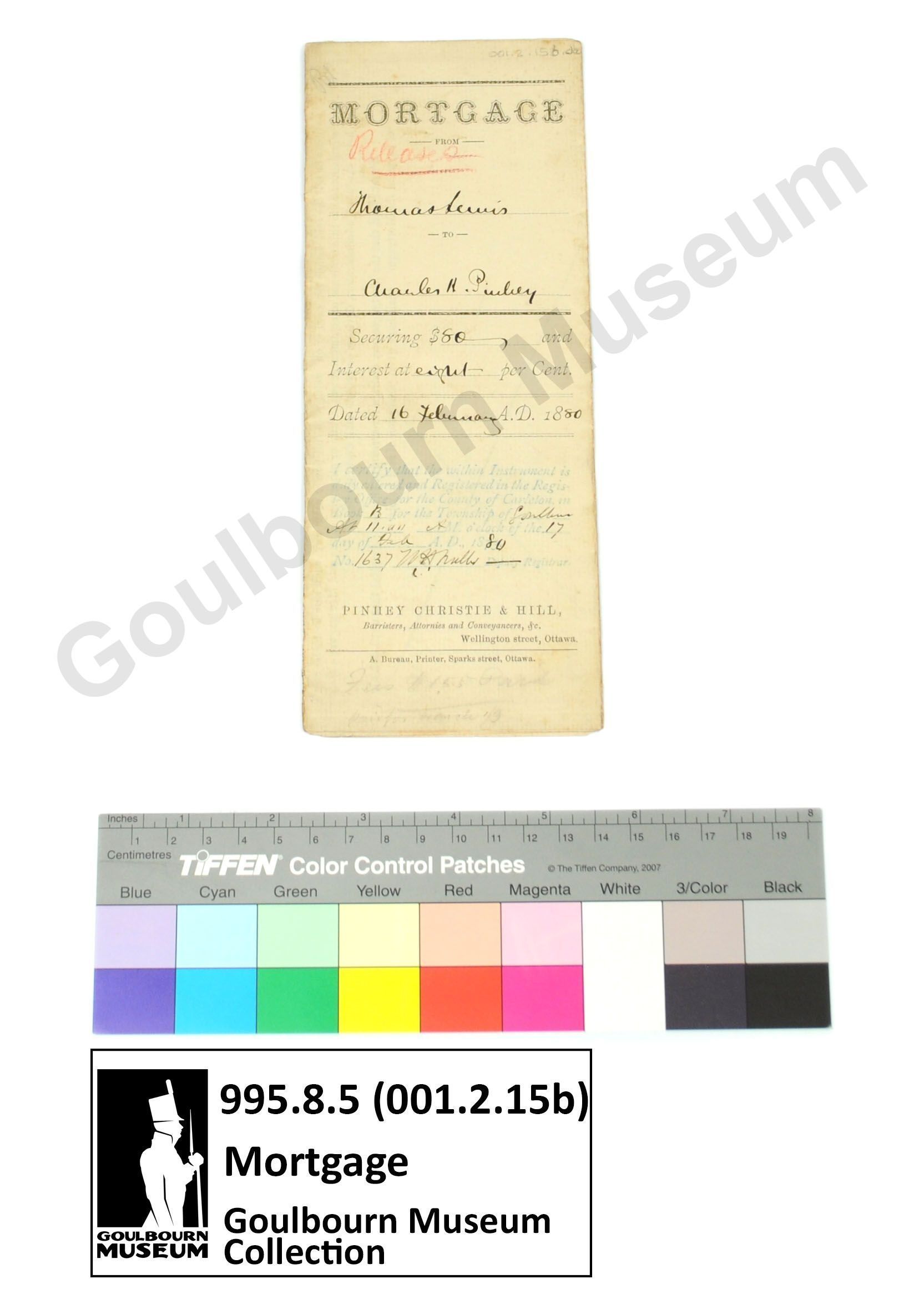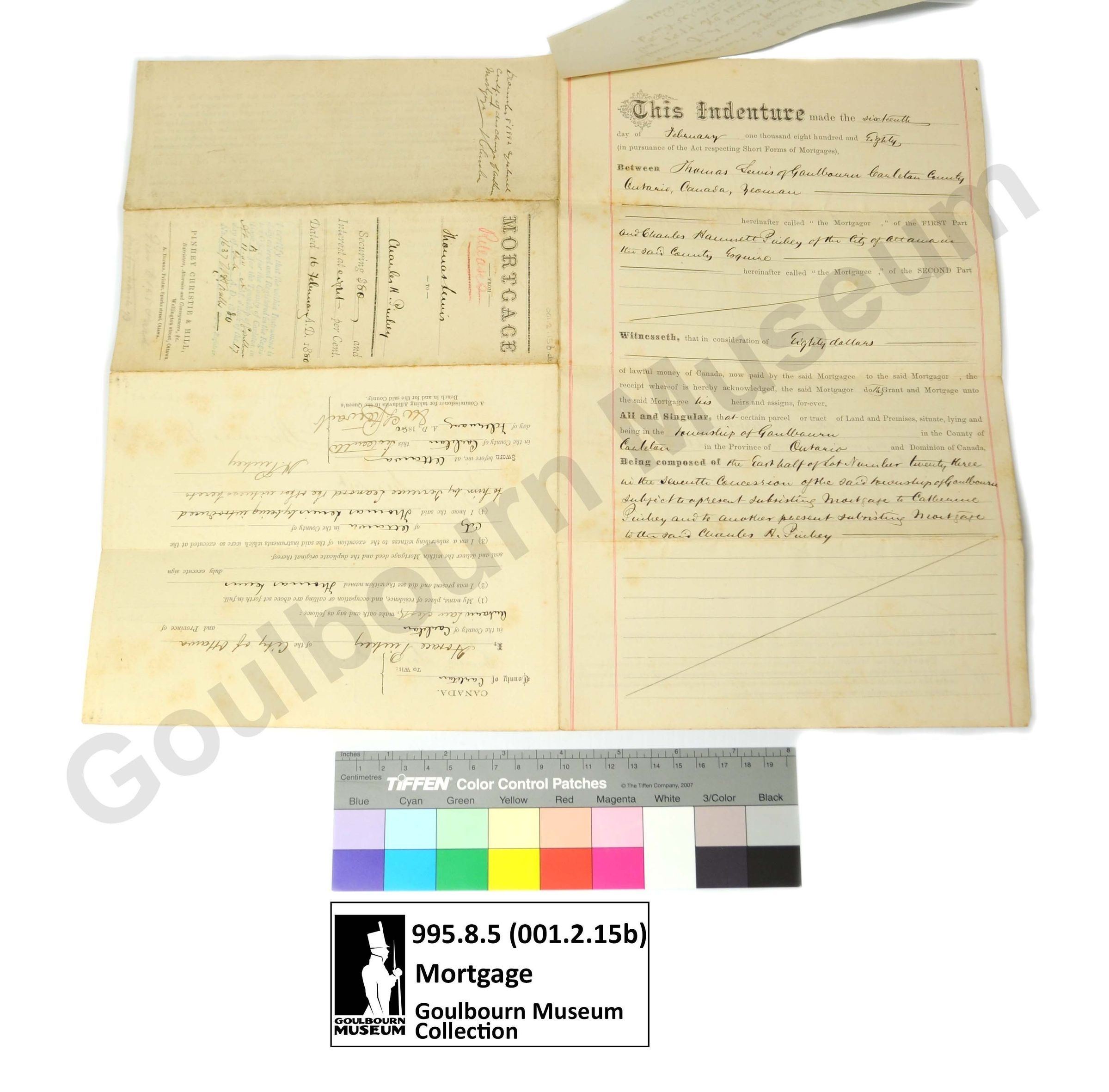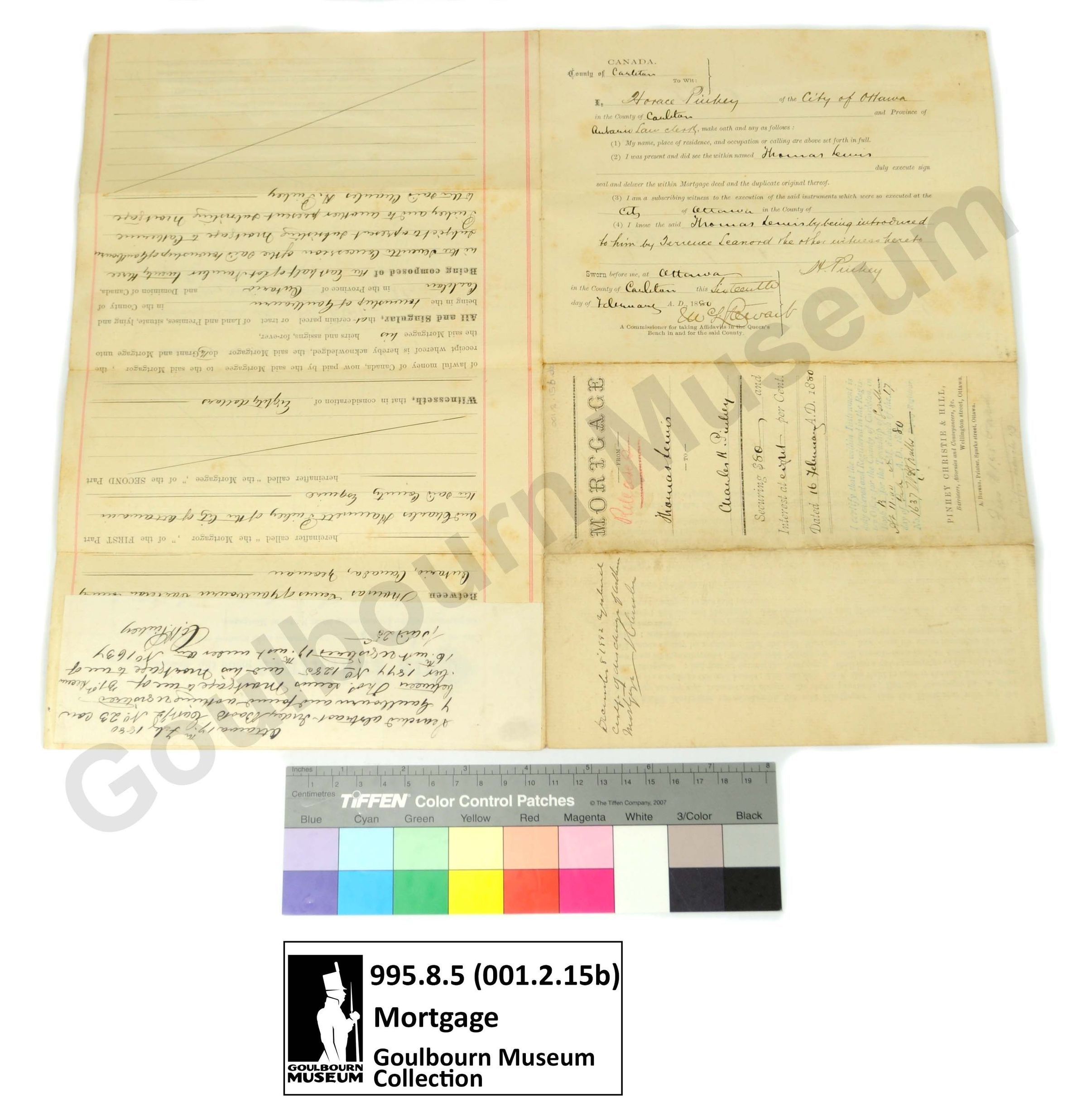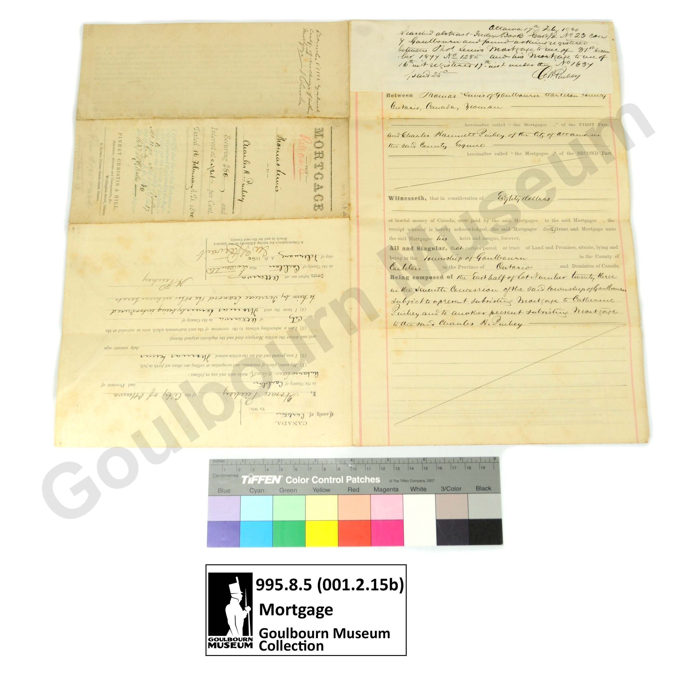 Muniment: Mortgage, Thomas Lewis, Charles H. Pinhey, 1880