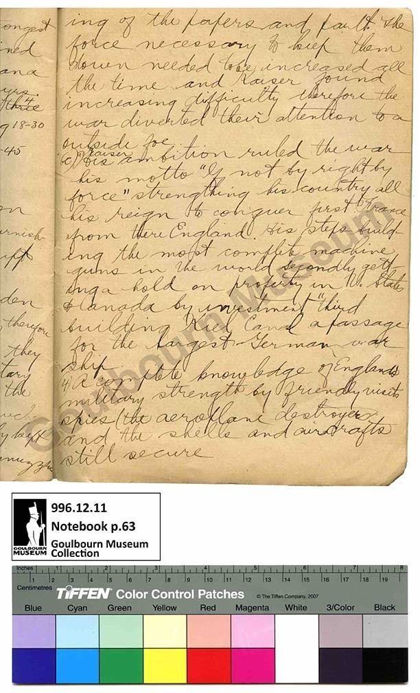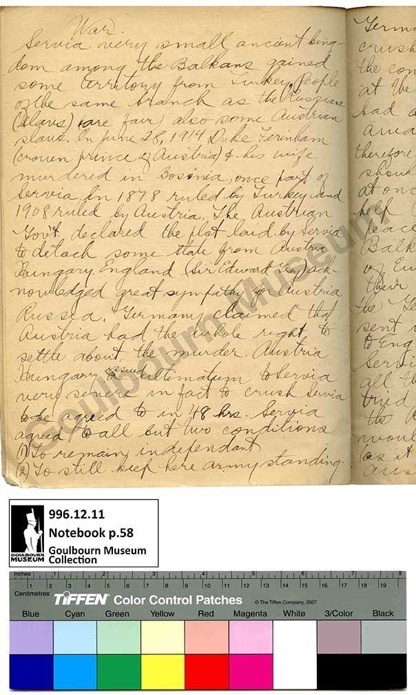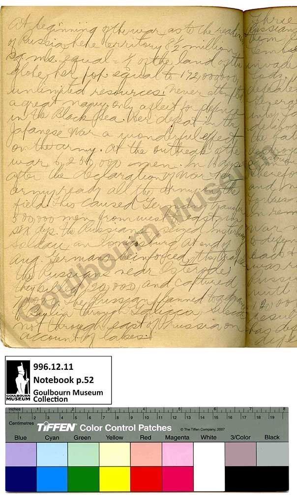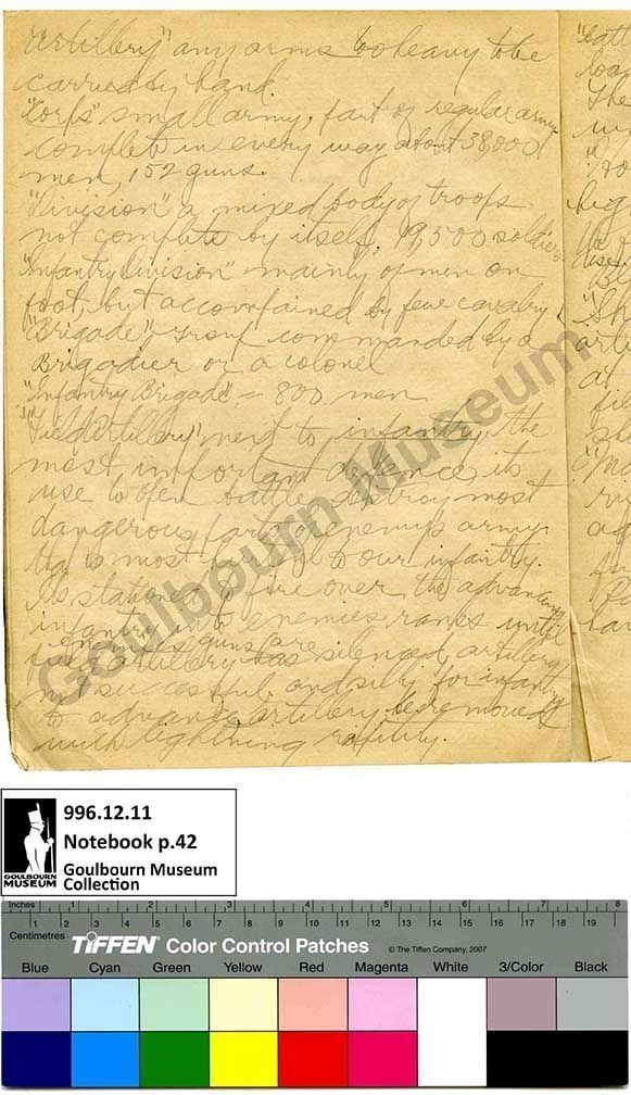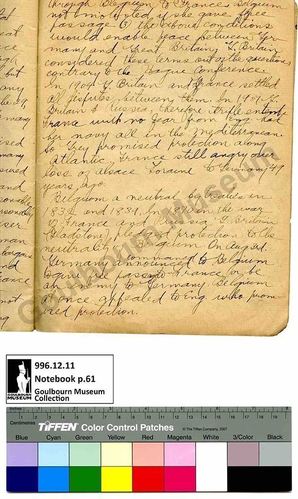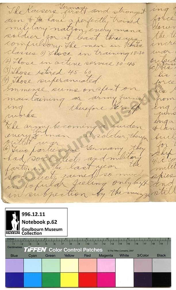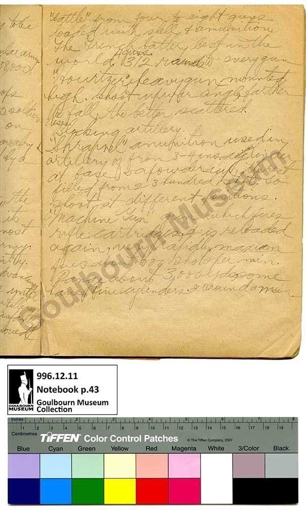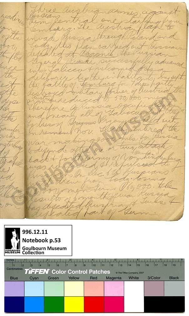 Notebook from the First World War collection of school work related to Sefton Stewart, a Richmond, Ontario resident who served with the Canadian Expeditionary Force during the Great War.Collection
