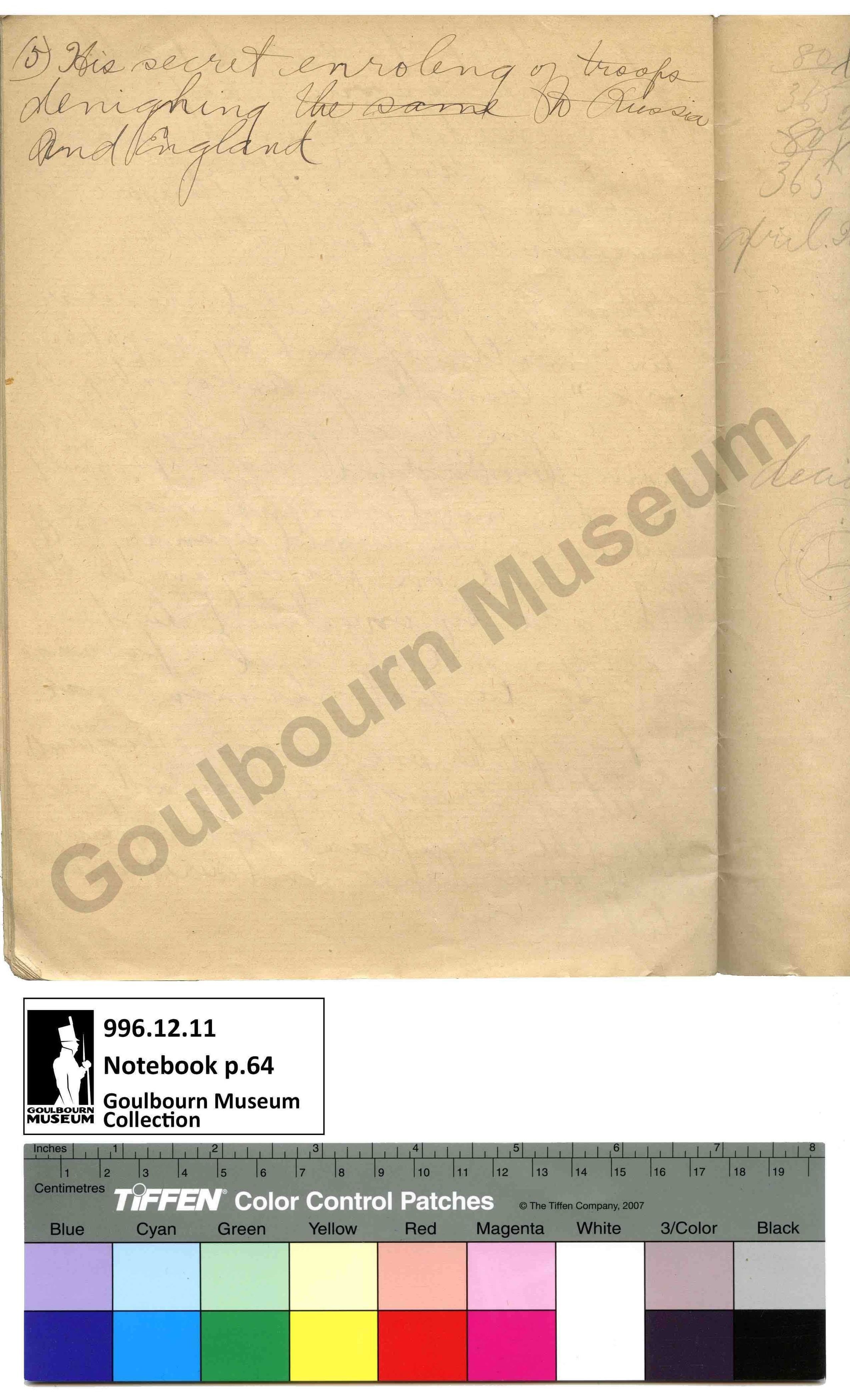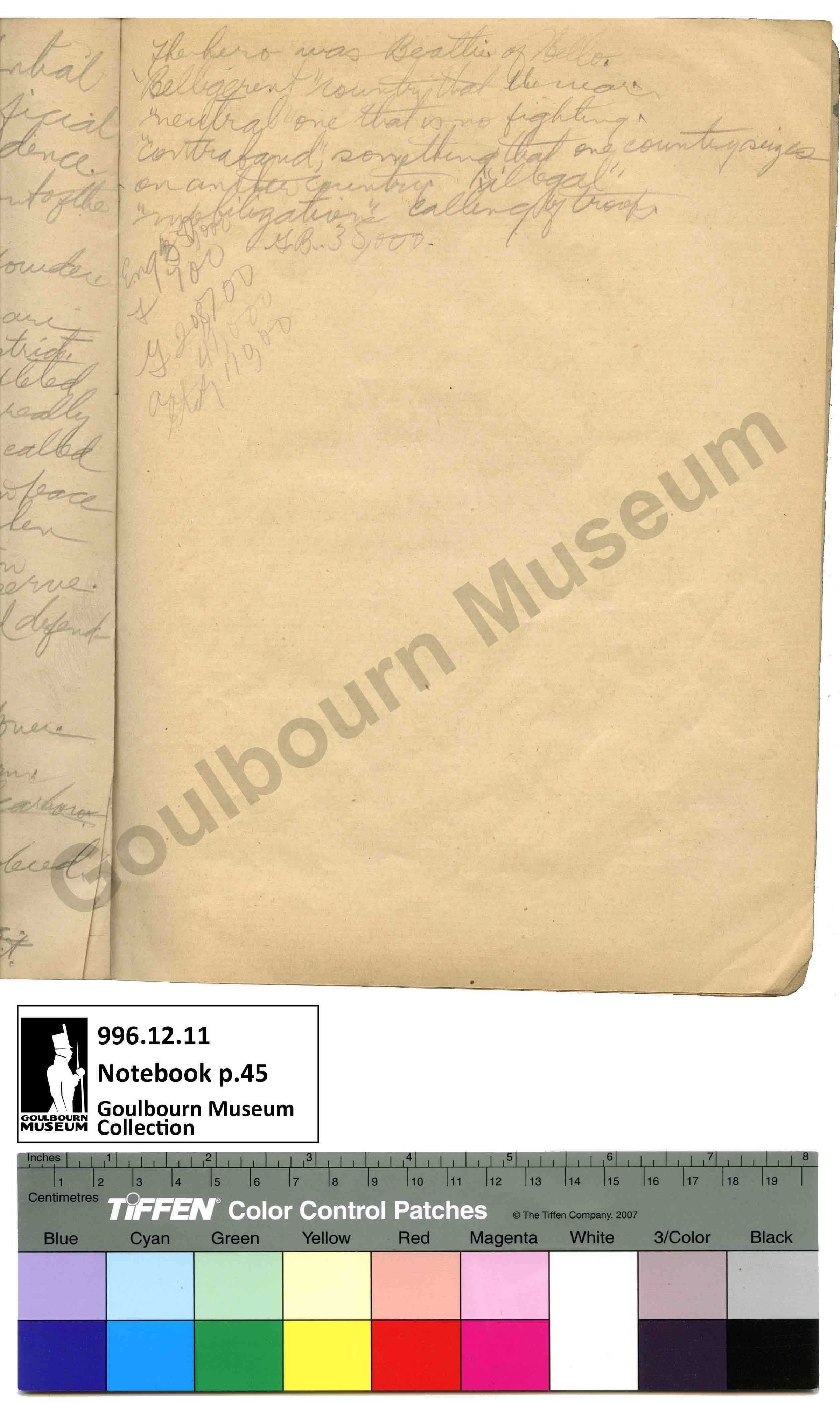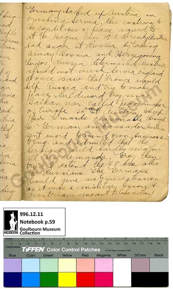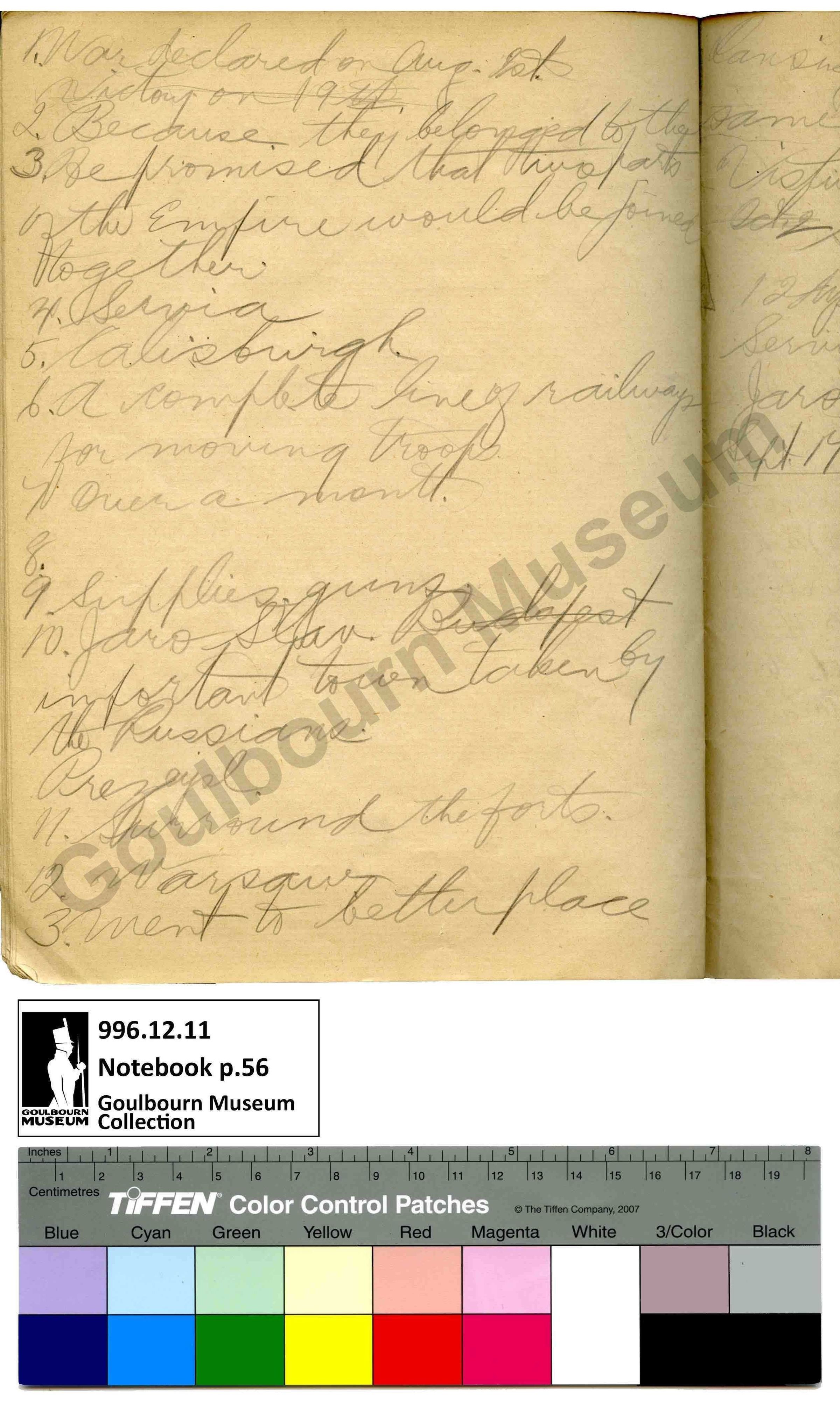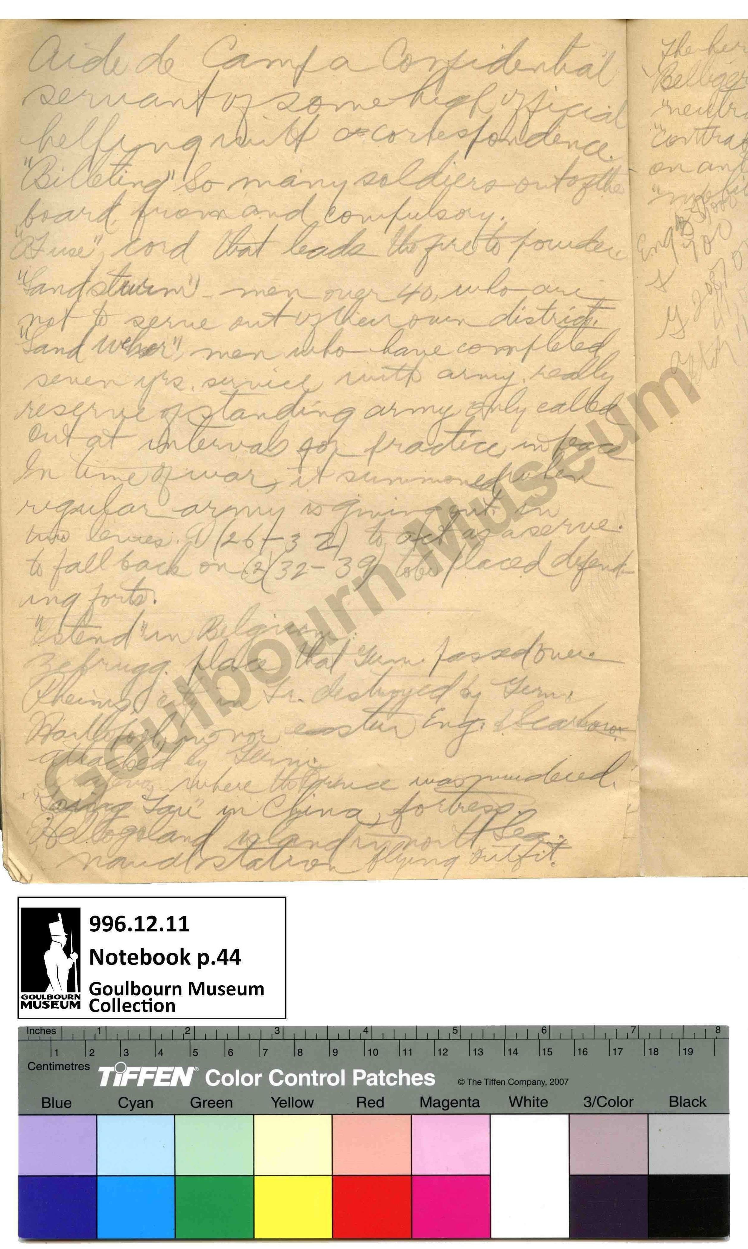 Notebook from the First World War collection of school work related to Sefton Stewart, a Richmond, Ontario resident who served with the Canadian Expeditionary Force during the Great War.Collection