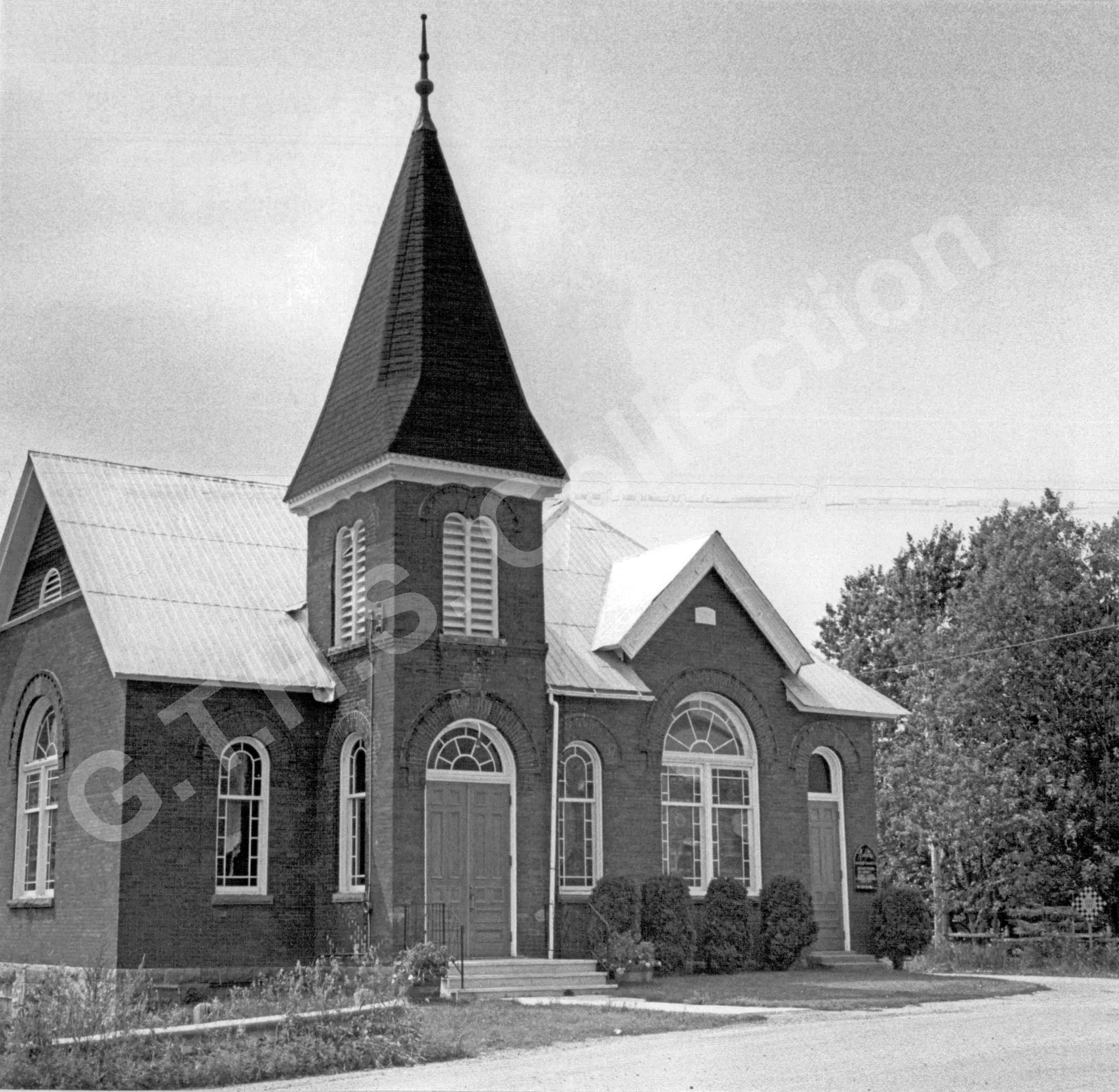 In 1899, land was purchased on the main village street of Ashton, on the ninth concession, on the Beckwith side of the town line. Here the brick church was erected that is still in present use. This replaces the former wood frame building. The new brick church was built under Rev. H. W. Burnett of the Ashton Circuit. - The Story of the Churches', File 008Collection