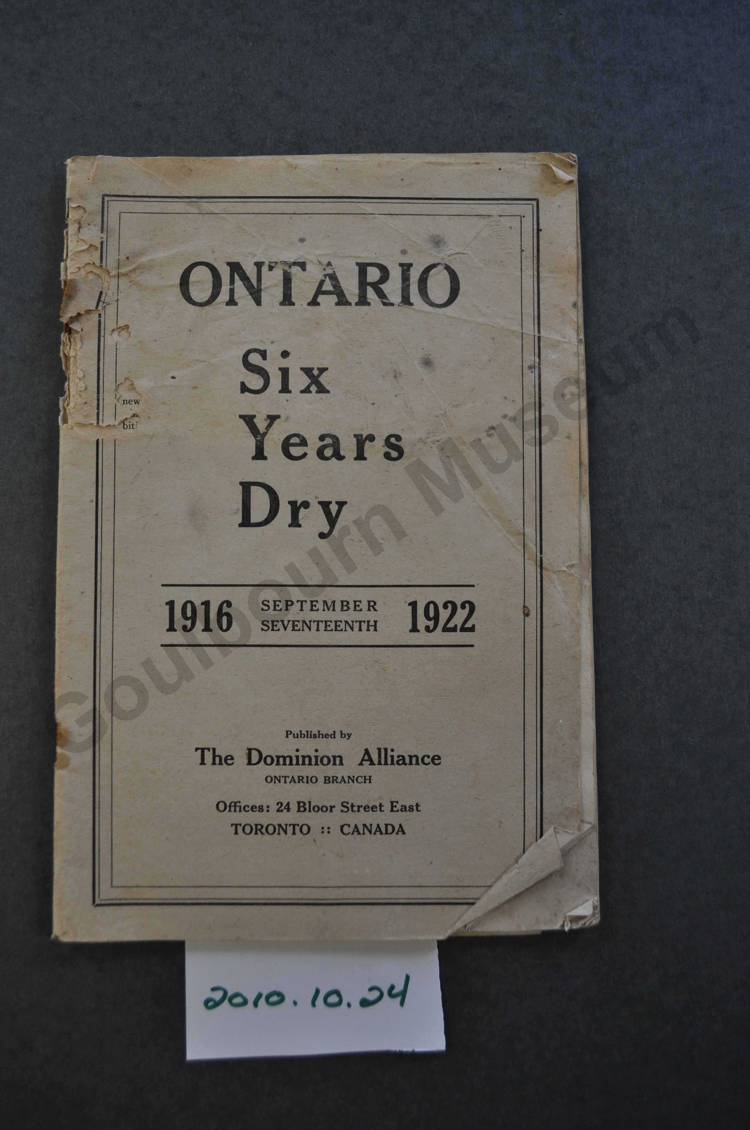Booklet: Ontario Six Years Dry 1916-1922