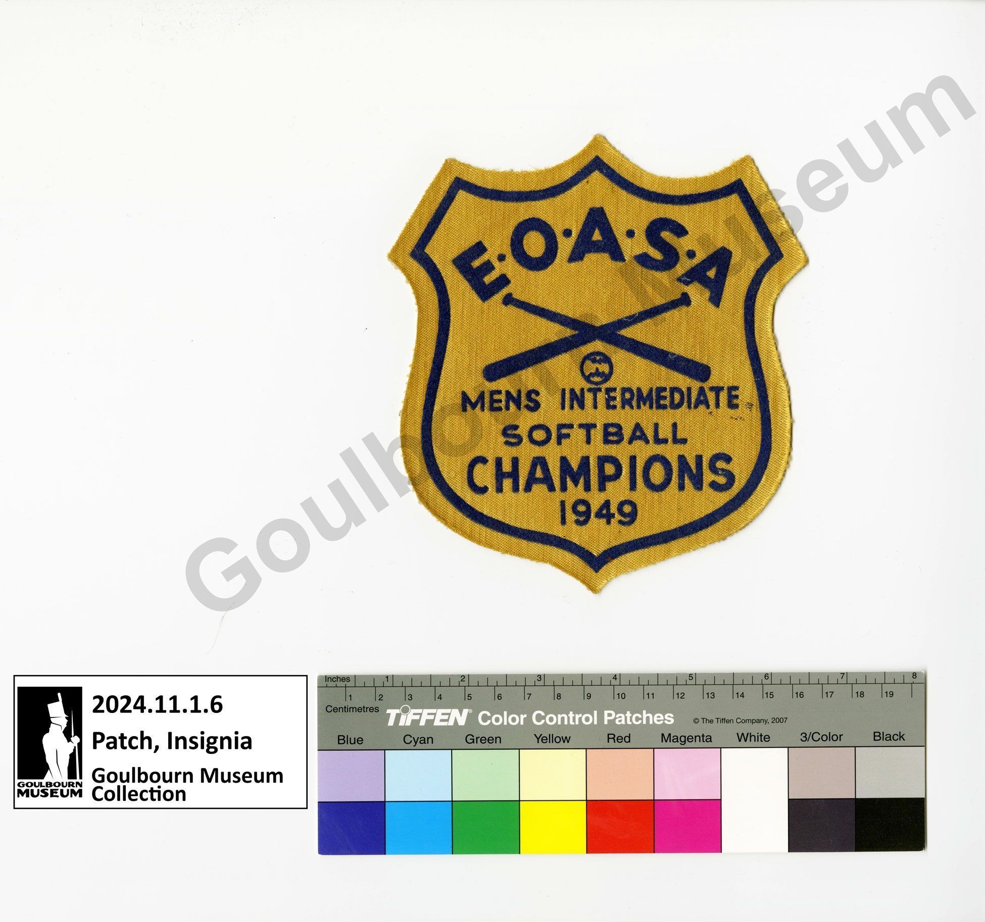 Patch, Insignia: E.O.A.S.A. Mens Intermediate Softball Champions, 1949Entry/Object ID