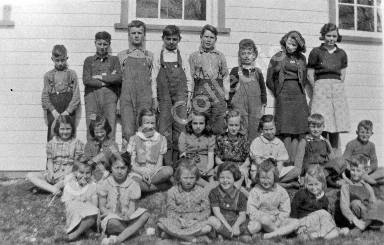 School Section No. 7 (S.S. #7), Ashton School. Ashton School was also S. S. # 12 Beckwith Township - it was a Union School. Originally a log building, it was replaced by a larger log building, which was replaced by a large white frame building just to the right of the original log structure. The white frame school burned in 1924 and was replaced by a brick schoolhouse in 1925.Photograph Details