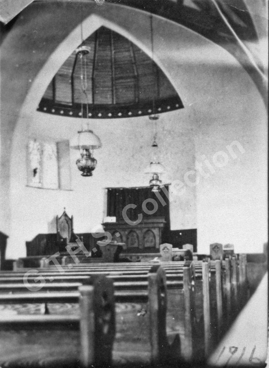 1916 - interior of new Anglican Church with coal oil lamps. Christ Church.