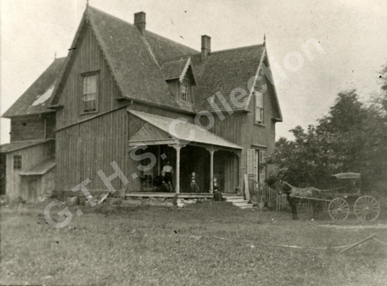 This large, 14-room house was built by Archibald Blair at the end of Worley Street (formerly Blair Avenue) in Ashton. Destroyed by fire in 1922, it featured three gables and two verandahs. The people on the porch are McEwen sisters, who lived there until the fire.Photograph Details