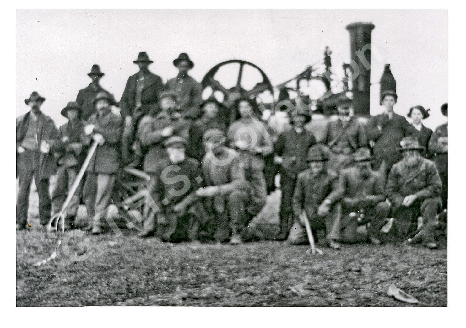 Photograph: Threshing steam engine and threshing crew at Jock River, c. 1920