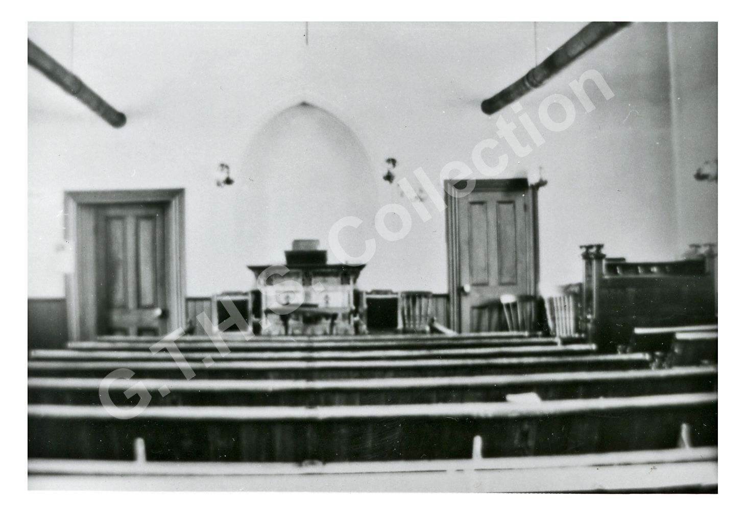 Photograph taken inside of the Victoria United Church, located on the 2nd concession of Goulbourn Township before 1934.Photograph Details