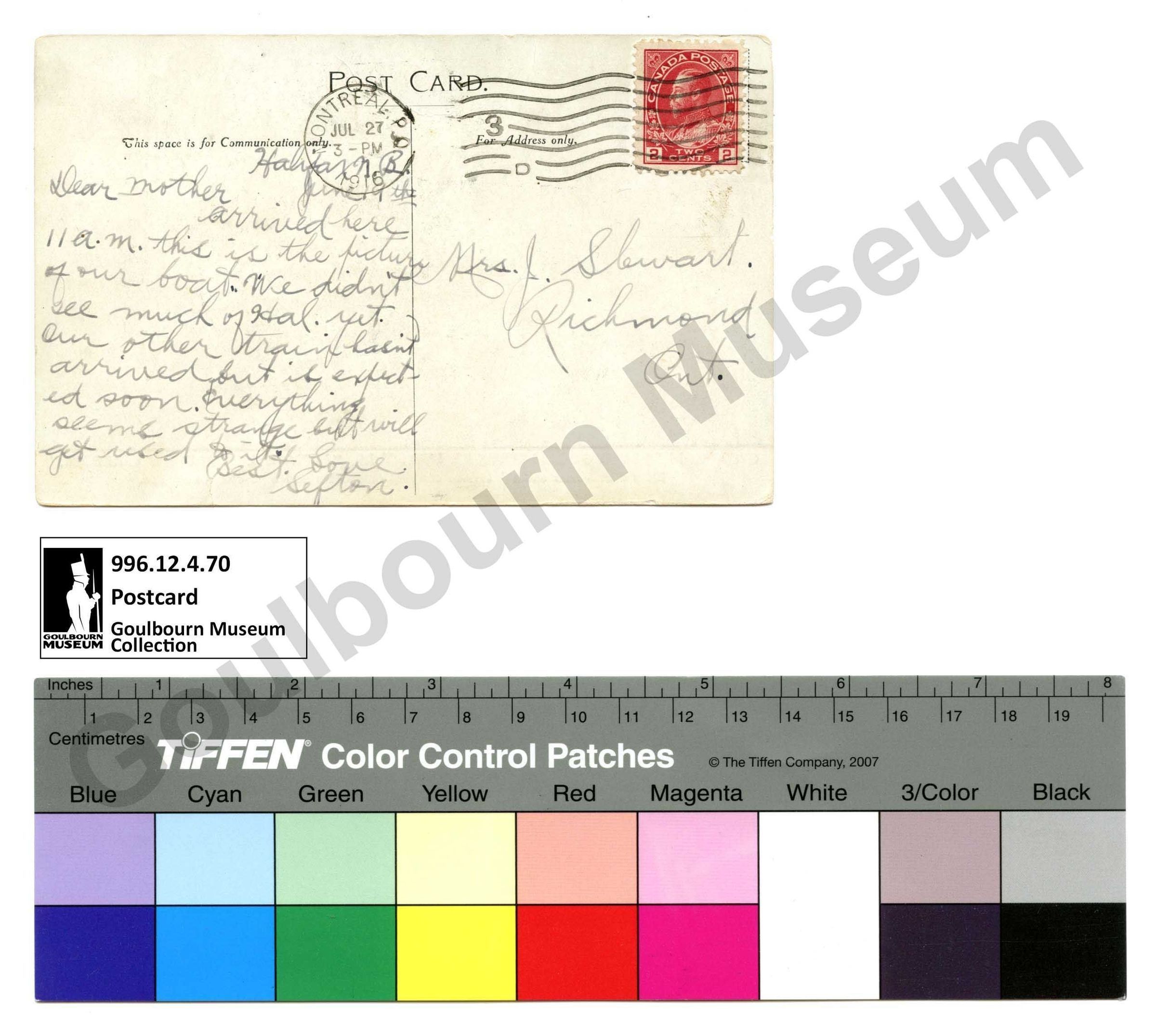 Hand written postcard which is part of a collection of letters written by Richmond, ON resident Sefton Stewart.Collection