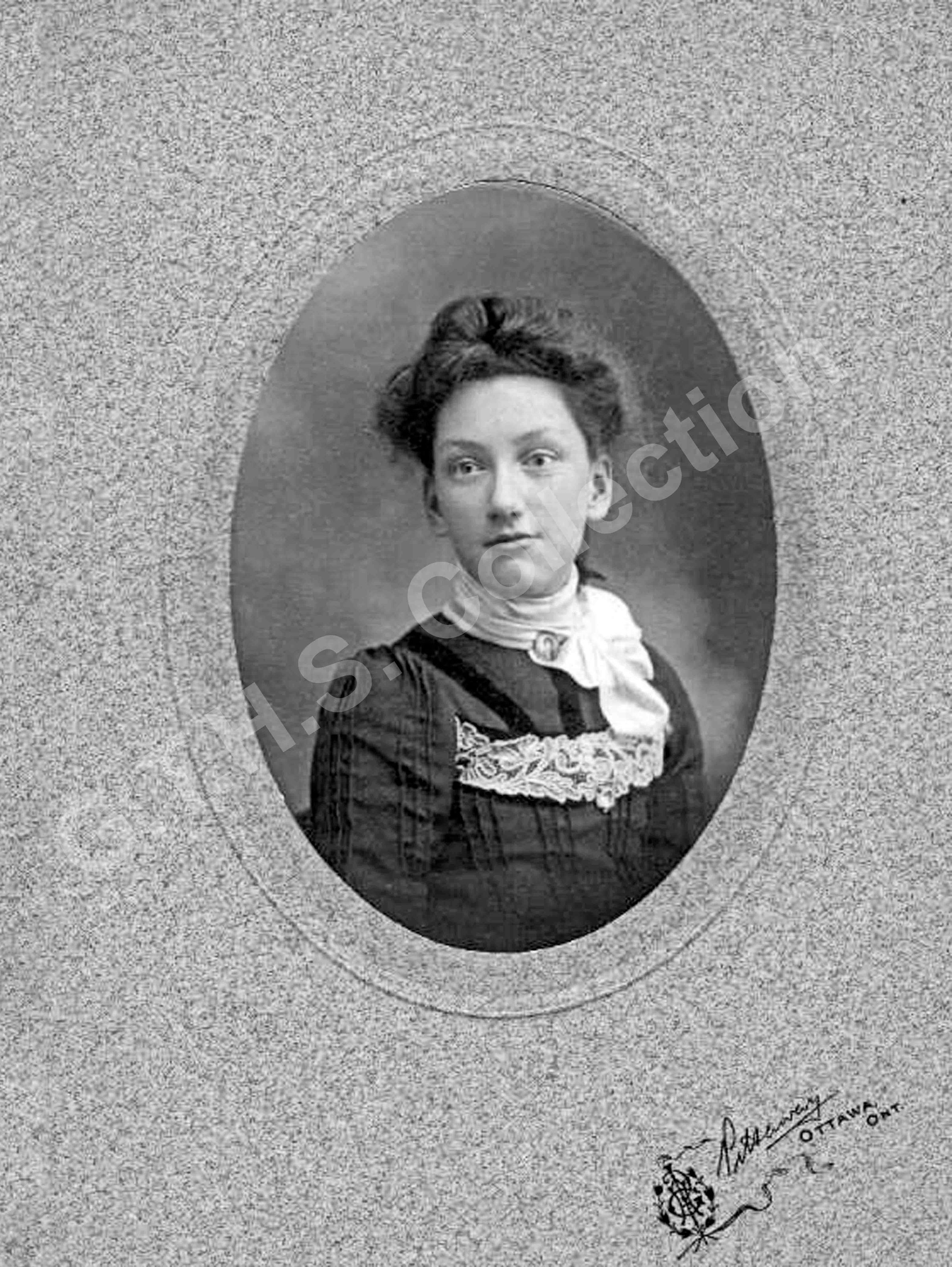 Miss White. Studio portrait taken by Pittaway, Ottawa, Ont. Lived in Beckwith Township, near the Goulbourn Township border.