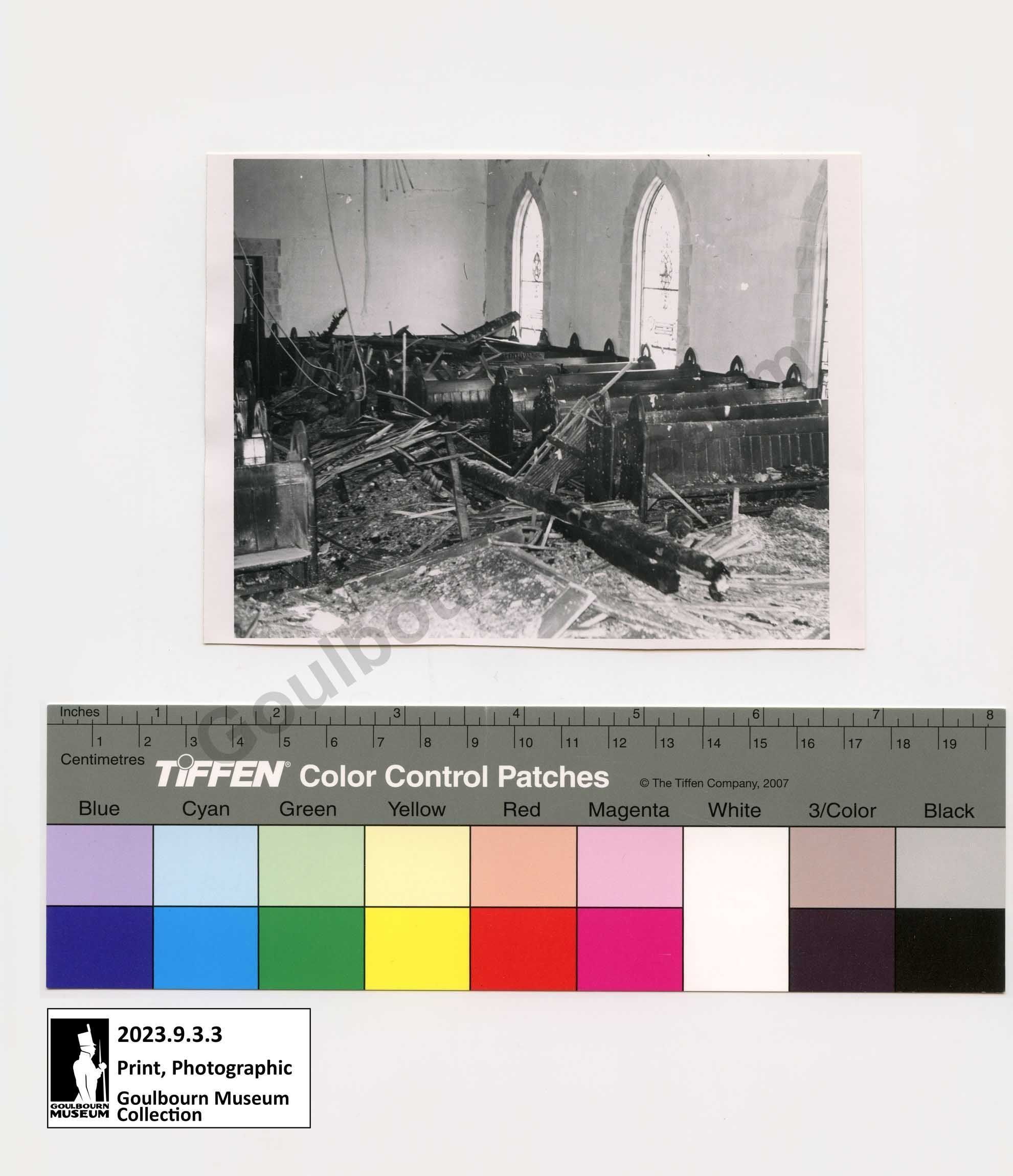 Print, Photographic: St. Thomas Anglican Church fire, June 26, 1964Entry/Object ID