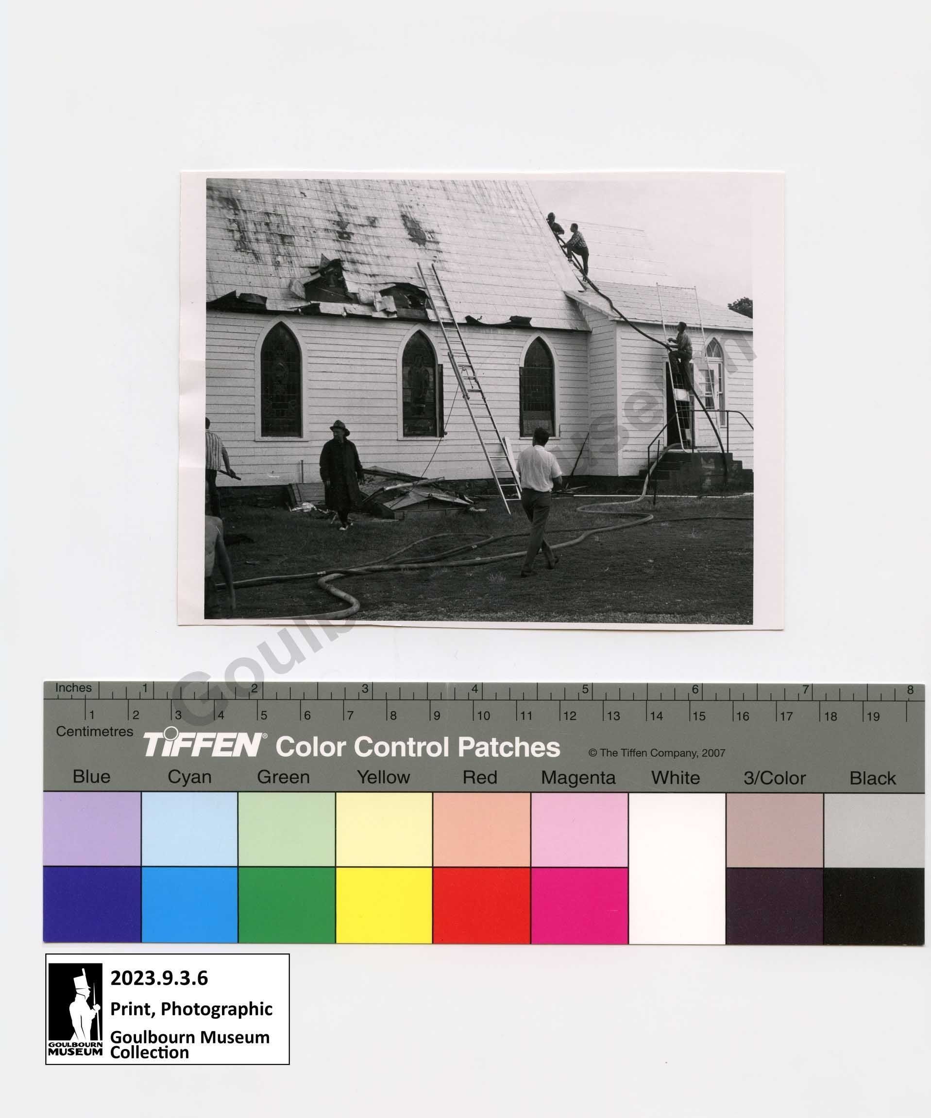 Print, Photographic: St. Thomas Anglican Church fire, June 26, 1964Entry/Object ID